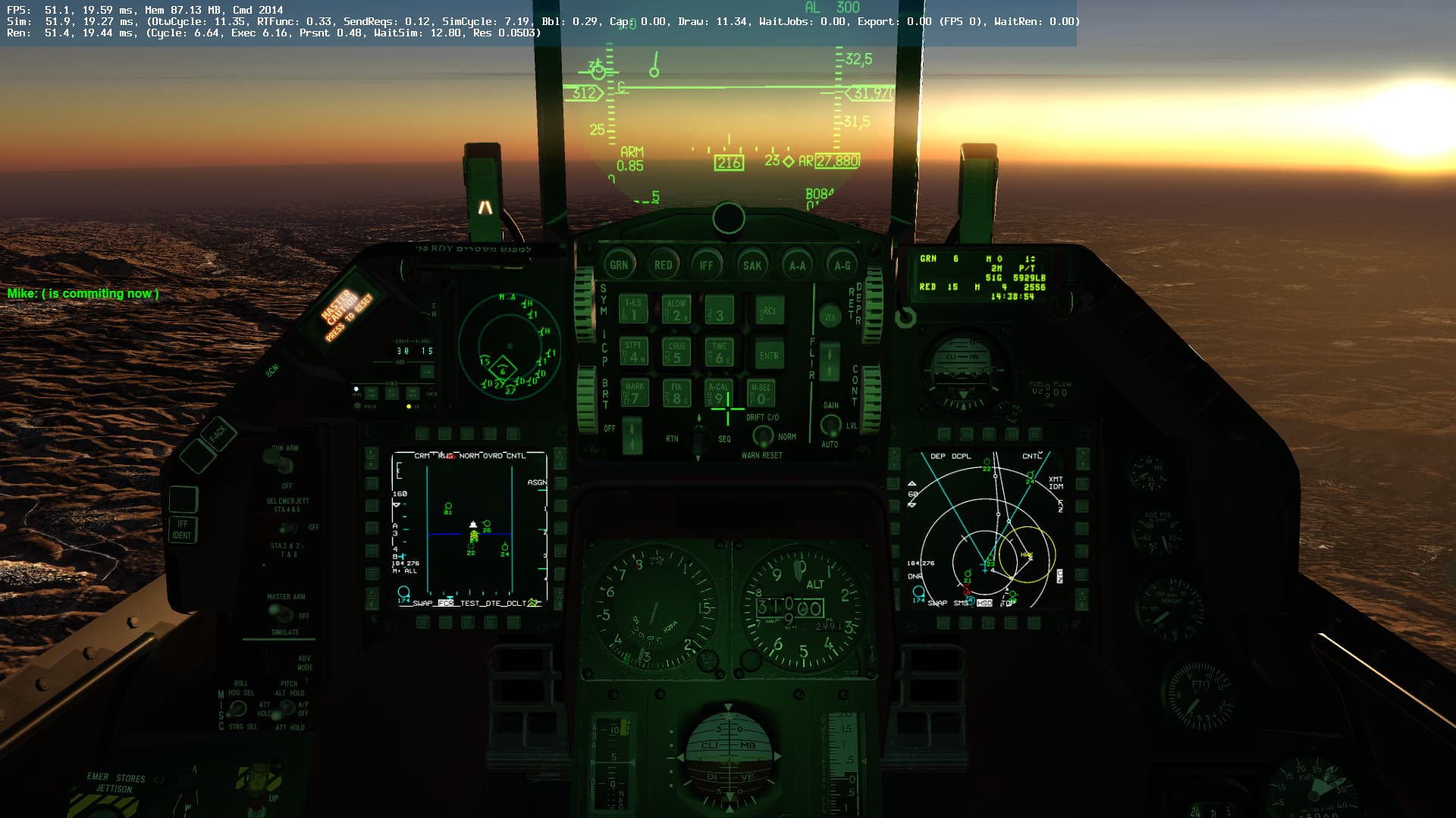 Guy on my right side, the most experienced squadron member from us, was flying on i5-2600K not overclocked, with 24GB DDR3 1600Mhz and only the 3GB version of the GTX 1060 GPU. I used the Alt + C +F keyboard combo to see FPS and was shocked because I saw at first sight how a picture is slowly. 15-20 fps and that guy was capable to the shot down 4 Su-27 (F-15), and took the damaged F-16 back to the airport, with two exceptions, each sweep mission, I swear! Incredible performance with F-16!
