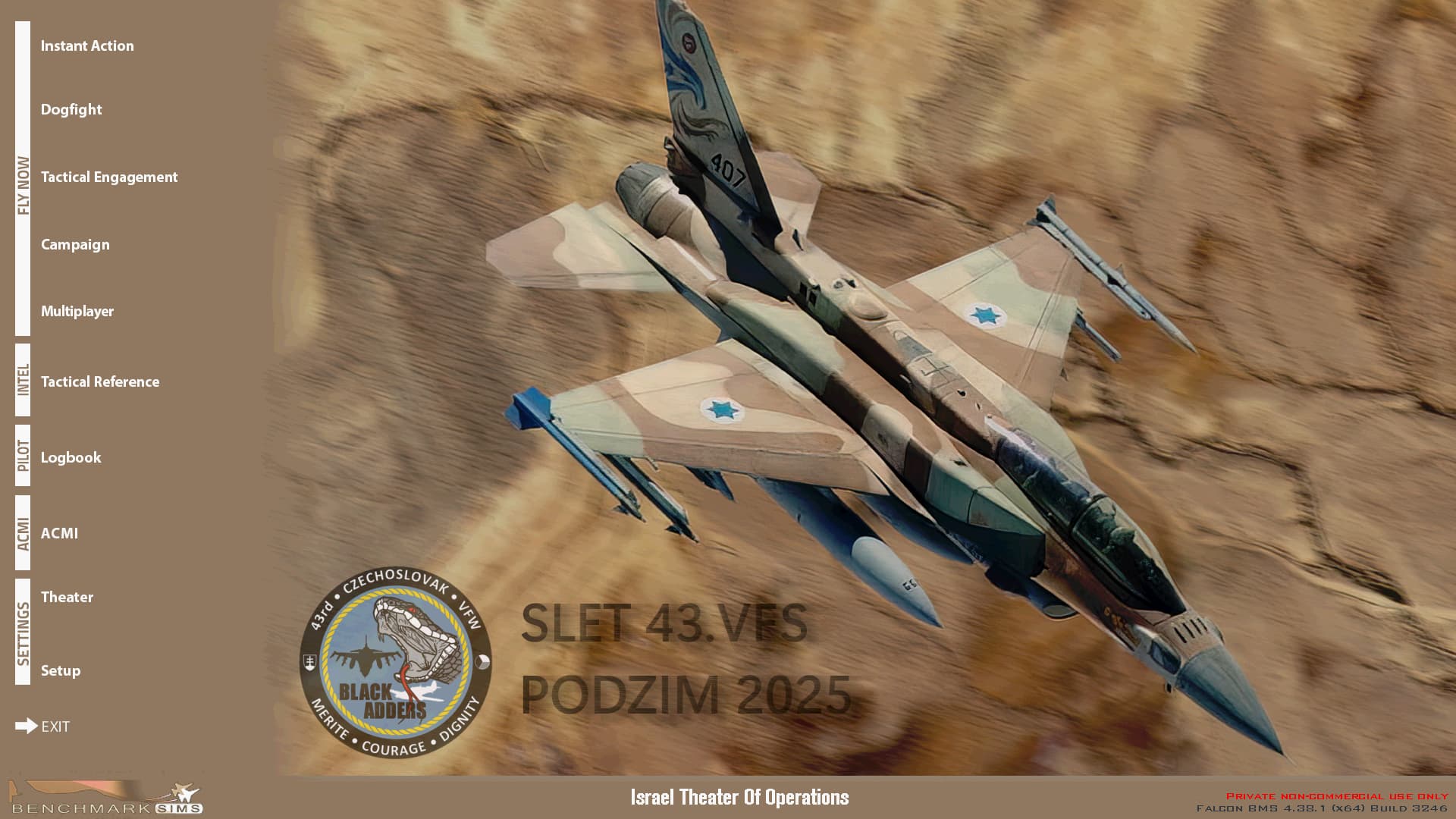 So, we had to be split into the 2 teams, blue (5 persons) and red (5 persons). The Israel campaign was prepared with F-15 and F-16 on both sides, because pilots of the red and blue teams have an opportunity to fly with F-16 or F-15 based on choice, skill, and current mood.