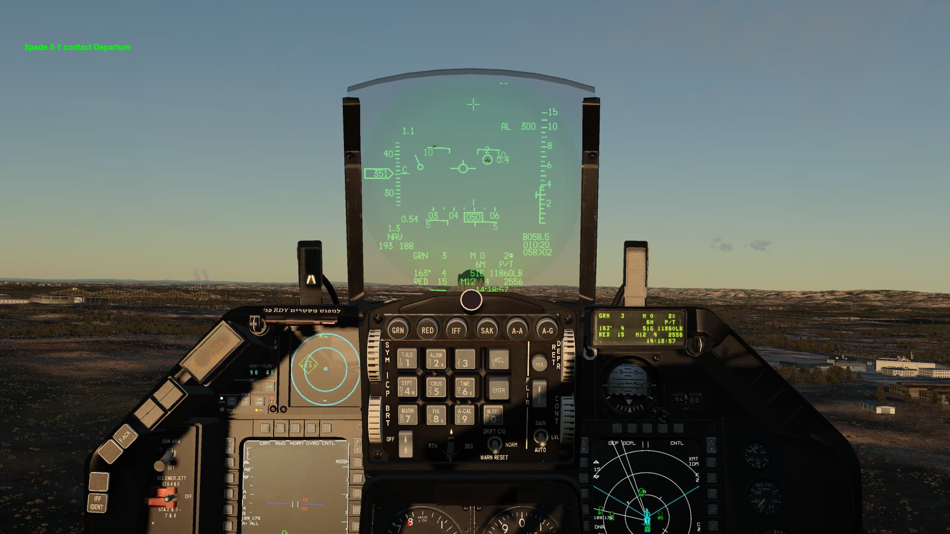 On the RWR, we saw the F-16 as an enemy MiG-29 light fighter and the F-15 as an enemy Su-27 heavy fighter. Red used the same planes but with the typical aggressor’s fighter blue camouflage.