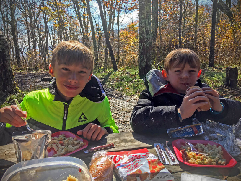 After a few hours we hit the AT shelter and stopped for sandwiches, pasta salad, and some drinks. We were a bit of a muddy mess…some of us more than others…