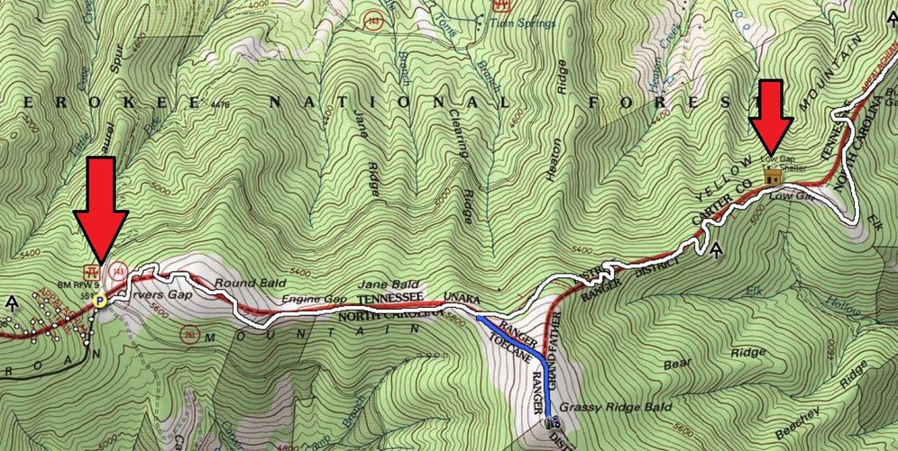 Heading back the way we came…a long slog back to Carvers Gap…