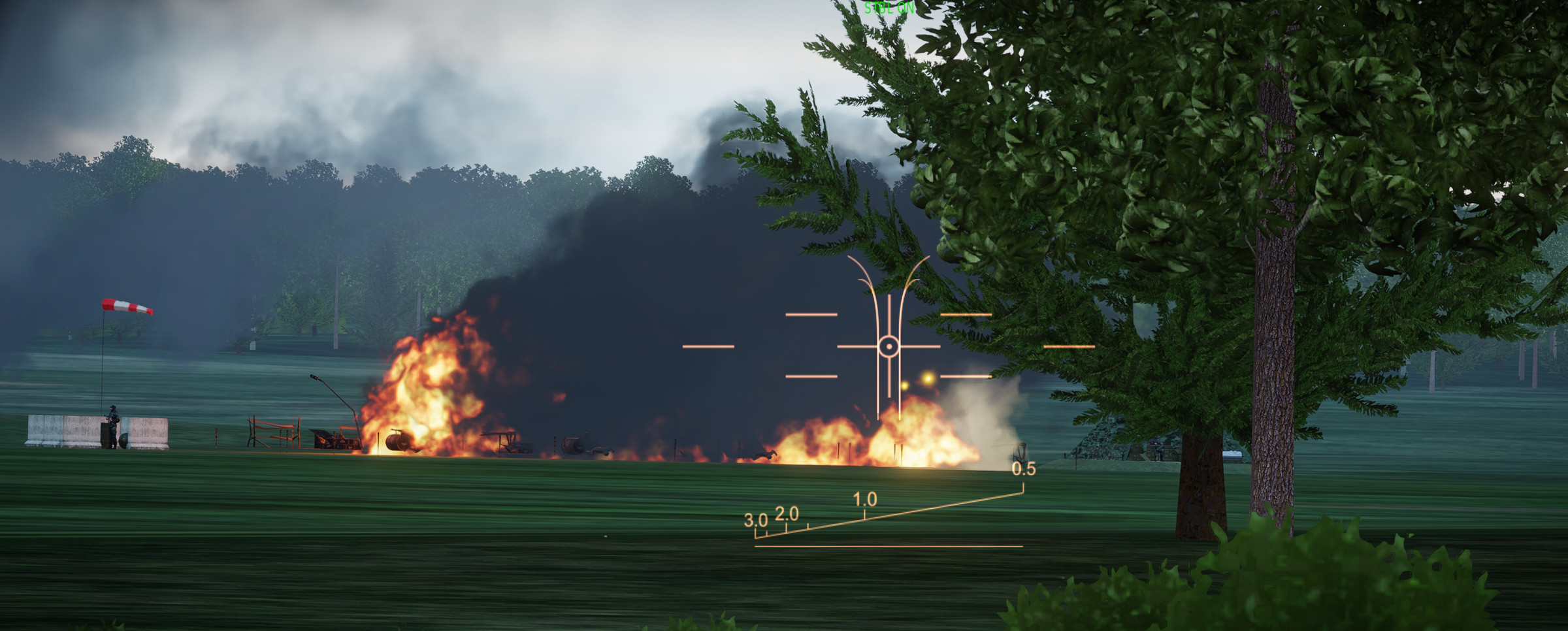 If you’re using VR or head tracking, rockets are pretty simple and fairly accurate up close (you shouldn’t be that close unless it’s unarmed). If you’re shooting without George having a target designated, look at the target and put your crosshair on it. Keep looking at it, and steer to put the I-Beam on your crosshair. If it’s solid and overlaying your cross hair, fire away. Bear in mind the pylons don’t move instantly so try to keep your pitch consistent while firing.