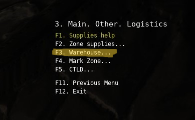 In your radio menu go Other → Logistics just like with the zone supplies, except now we will select Warehouse.