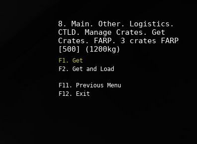 Spawn into unit capable of carrying cargo. Currently that is the C-130, and all helicopters except the KA-50, AH-64, and OH-58. Pull up the radio menu and select Other (your radio menu options will vary per platform)