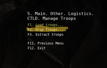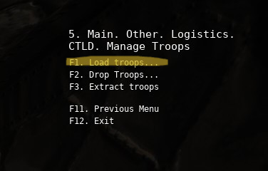 Now use the rearm menu (or the Cargo menu in the C-130) to load the cargo as normal. Once you have arrived at the zone you are trying to capture or upgrade, unload your cargo as normally permitted by that unit (sling load release, airdrop, land and unload).
