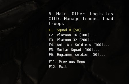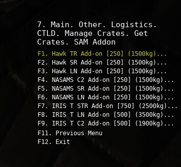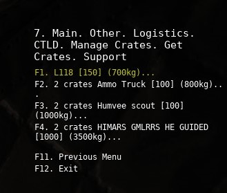 In the example above, this is what is available for a CH-47, smaller helicopters may be limited to only a crate of 10 rockets by weight. The weights do NOT scale, they are fixed. Here is where the heavy lift helo’s like the CH-47 and Mi-8, and our only transport the C-130 excel.
