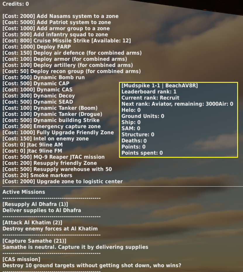 - When zone is captured, you’ll get notified that ATIS is now available for that zone if airfield incase you want to land there.