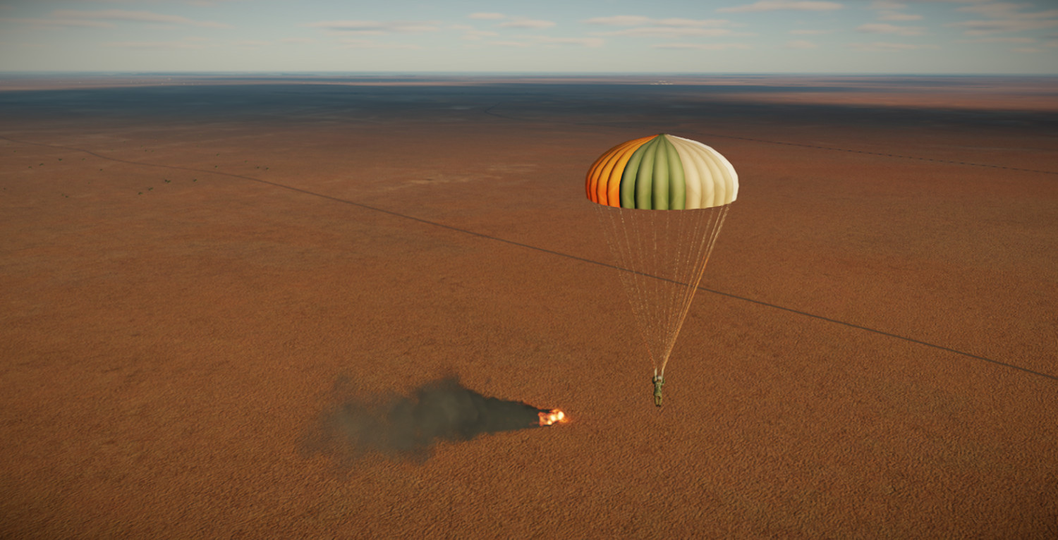 Now..here is where the fun really starts. Yes, exchanging a JF-17 for an AA vehicle isn’t a great exchange rate..and I’ll try to do better in the future. BUT..at least I was able to eject…and in this mission, an ejected pilot can be rescued! From the F10 map I give the ejected pilot (uh..me..) a waypoint to start making his way to the west to get a bit further away from the threat area.