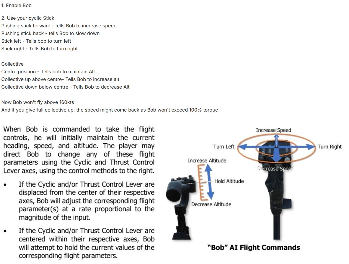 - Escort for A-10, F15E, Hercules with built in radio menu: “Orbit here”, “setup reacetrack”, “Rejoin” “RTB”, “Patrol ahead”