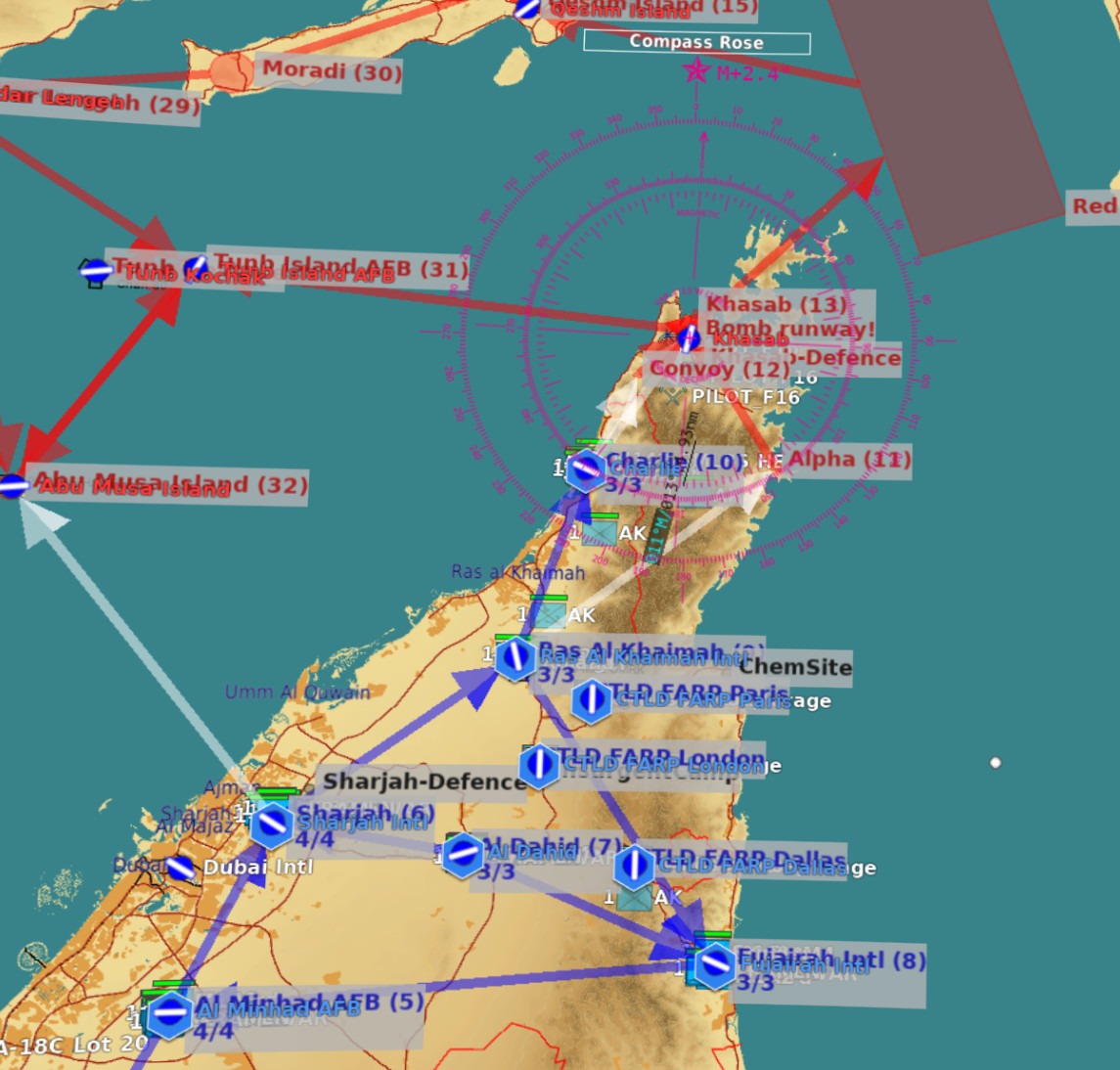 Bounced from Alpha up the coast a bit to setup FARP Moscow which should provide a great ingress point for the fight at Khasab.
