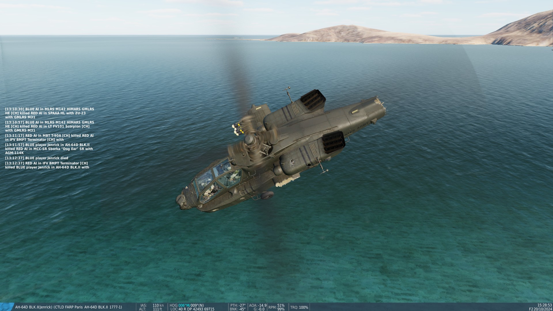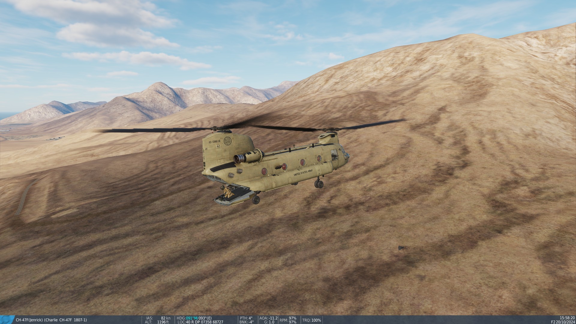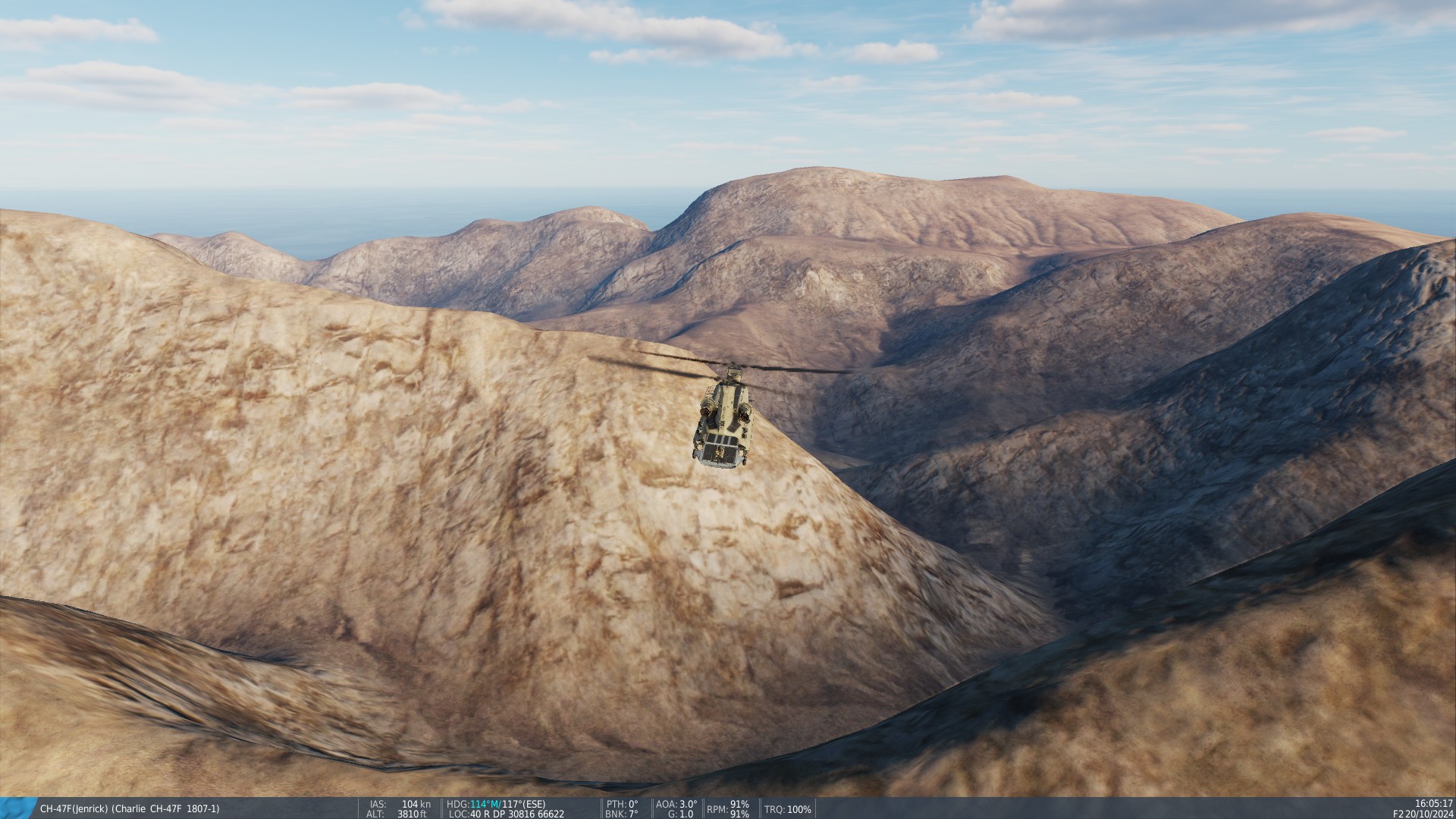 A fully loaded fully fueled Apache is a pain to hover in the mountains, especially with SAMs constantly tracking me, lost a lot of helos today. Often due to me clipping the ground evading.