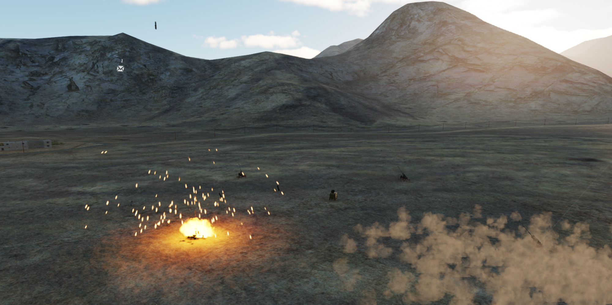 The HIMARs started doing it’s own thing after a few minutes, set off every alarm in the Apache when it started firing off missiles at Khasab. It thinned things out there some, but redfor has run in supplies. I parked two ammo trucks adjacent to the launcher to keep it fed, so for now it’s a steady state between the launch and redfor at Khasab. It’d be easy enough to build a bunch of HIMAR’s and overwhelm Khasab, but what would be the fun in that?