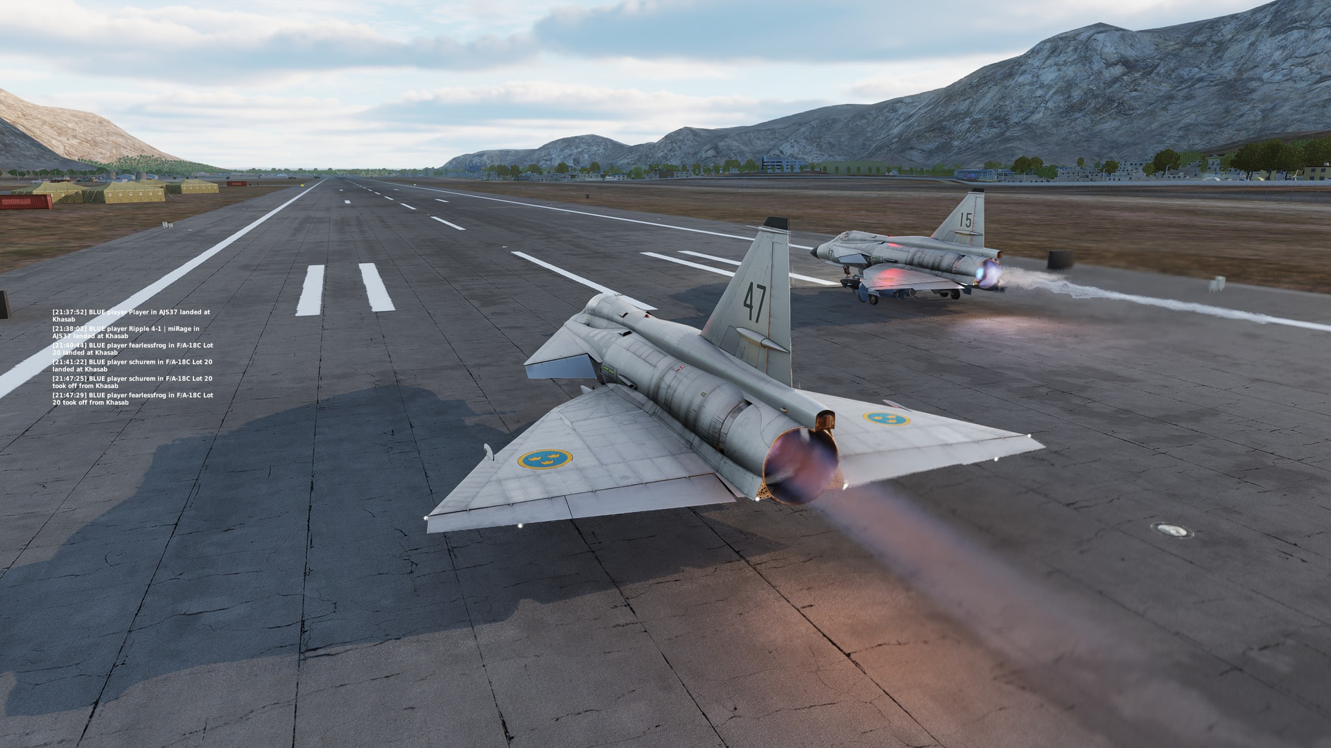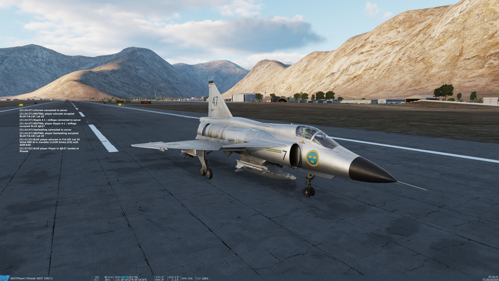 When joining blue coalition, choose the 2nd tab (dynamic or not dynamic, can’t remember), it’ll list air bases. Choose Khasab, choose an AJ37 and anti ship it up. Plus there is a tickbox for ‘Spawn Hot’ which is useful for me as I can’t start the Viggen.