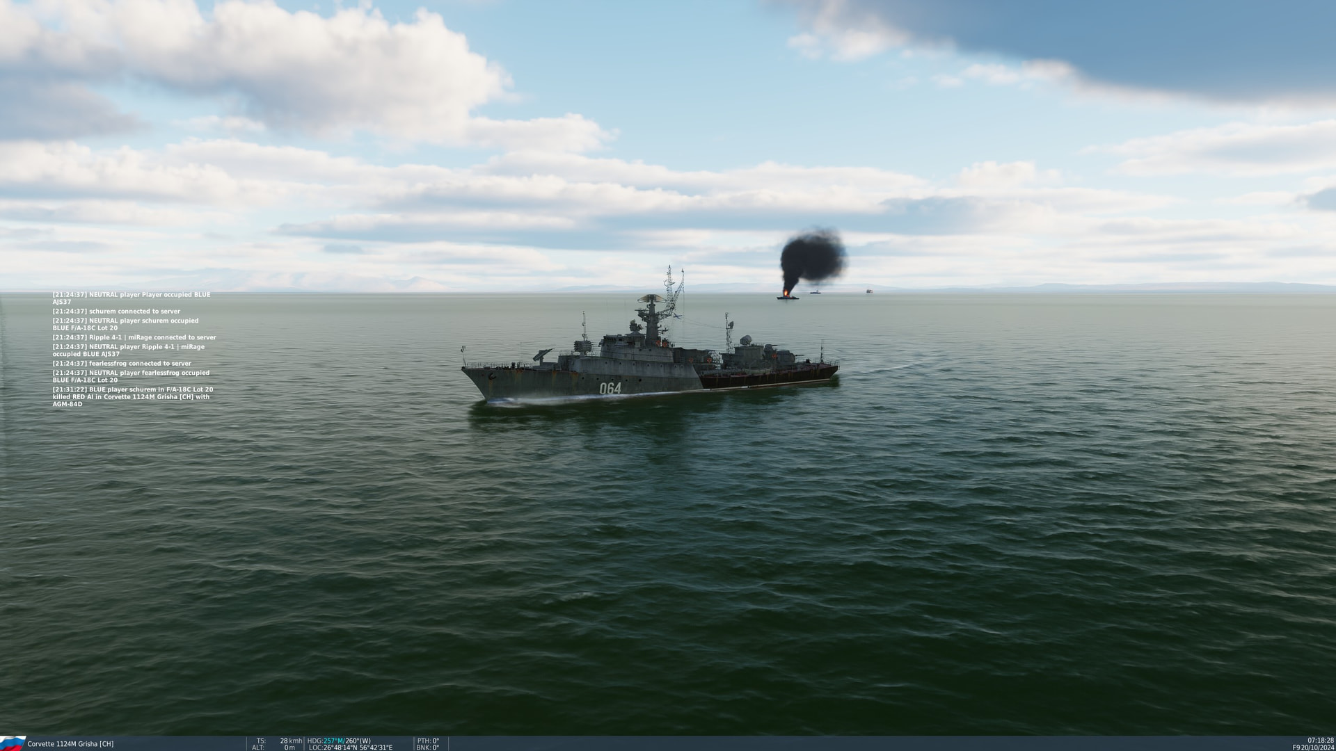 I managed to kill two ships, one MiG, one blue hornet and ram three harpoon missiles with wet spunges for warheads into a neutral ship. Oh and I didn’t get killed for a change!