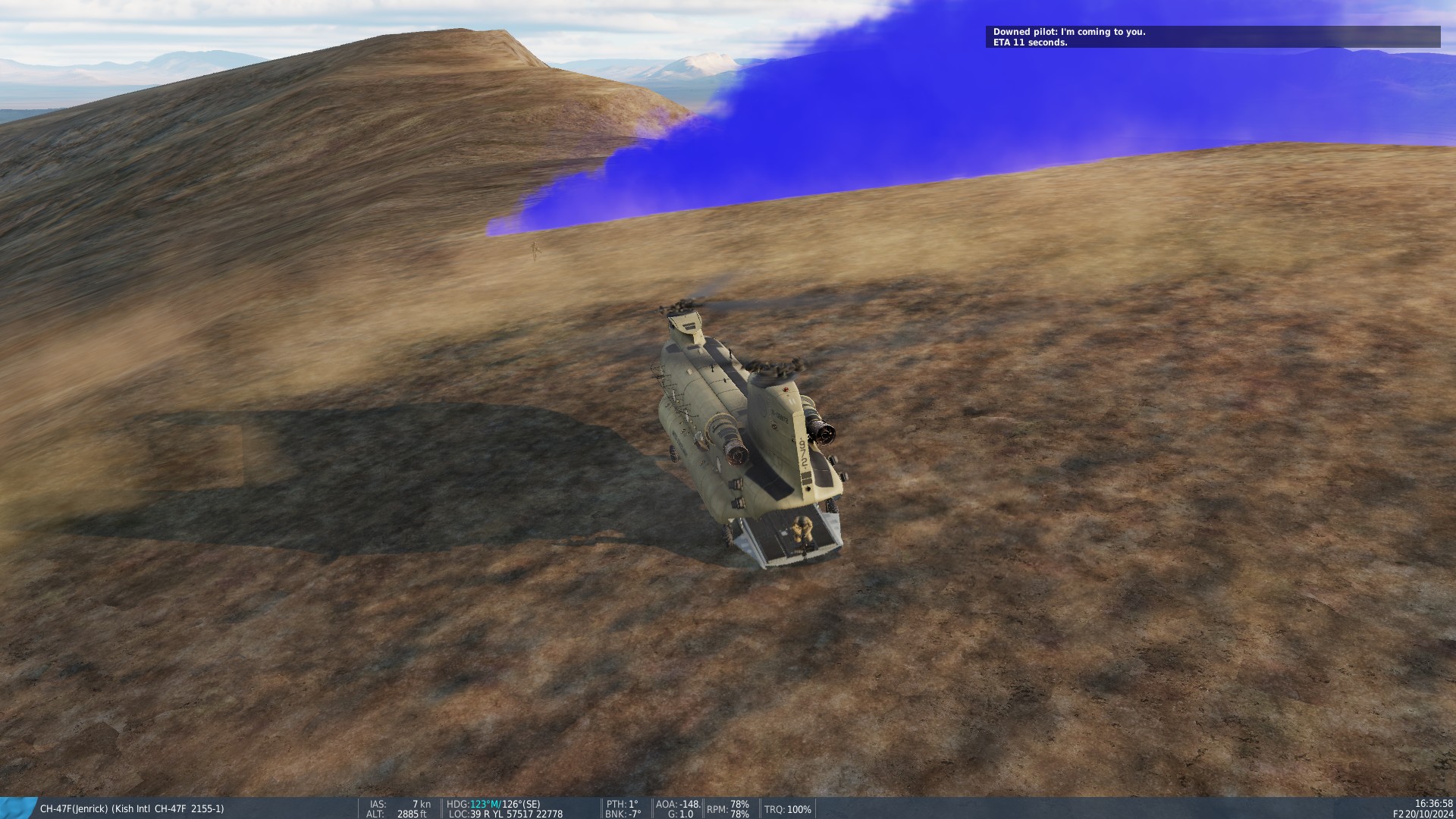 I put her down and she tips over in the most funny way. She is stable on her stub wing.. I decided not to risk anything with the credits we all worked so hard to get and decide to open the right door to let our troops out before trying to fix this.. And then the most terrible thing happens.. they actually spawn on my left. five machinegun round resistant rotor blades connect to the soft flesh and blood of a person..