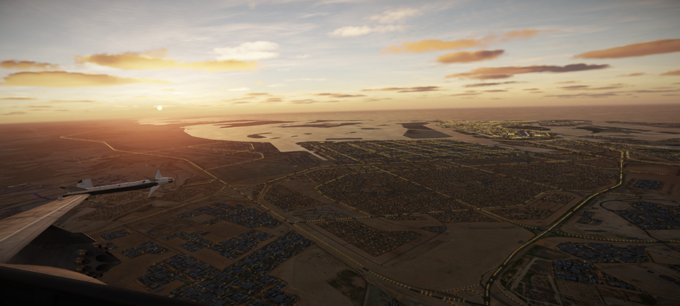 I must say..the next hour of flying was some of the most beautiful and immersive I have spent in a flight simulator. As the sky went from pale blue to orange to red..and the lights started coming on in the cities..it was absolutely gorgeous in VR.