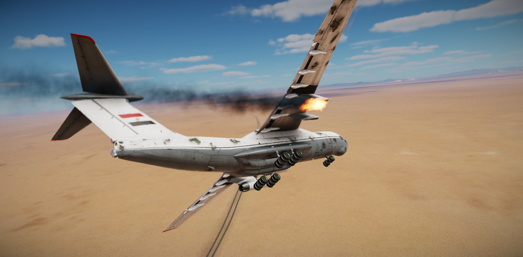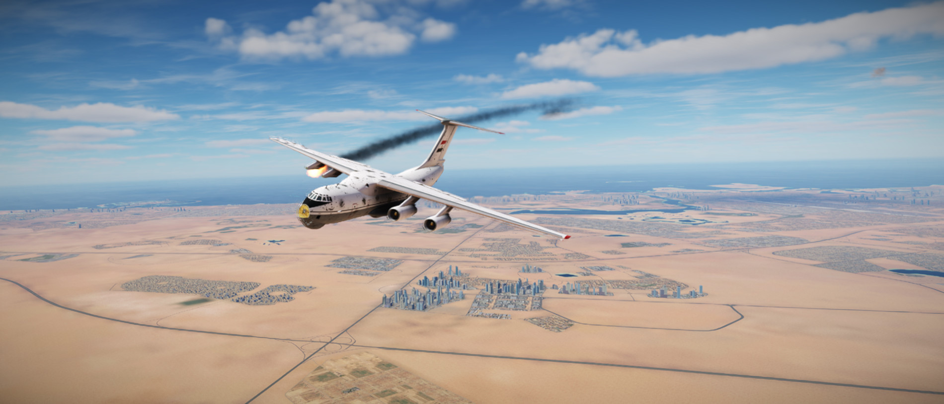 Apparently the IL-76 was being flown by the Ali Haynes because he was pulling off a miracle landing… I was enroute after being shot down and was full burner but only had heat seeking missiles. It was a race. As the IL-76 was on very short final I got tone and fired two missiles. Both missed. And I had forgotten to “charge” my gun..so that was useless.