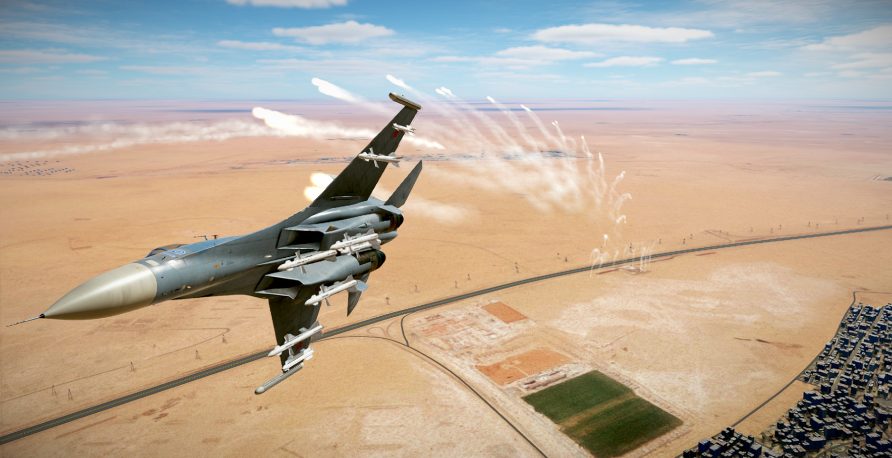 Once again..enemy CAP came down to hassle me. Al-Minhad only has SHORAD type base defenses which kept the Su-27s kind of busy but they were a constant hassle. I’m pretty sure the AI assigns CAP flights to these convoys.