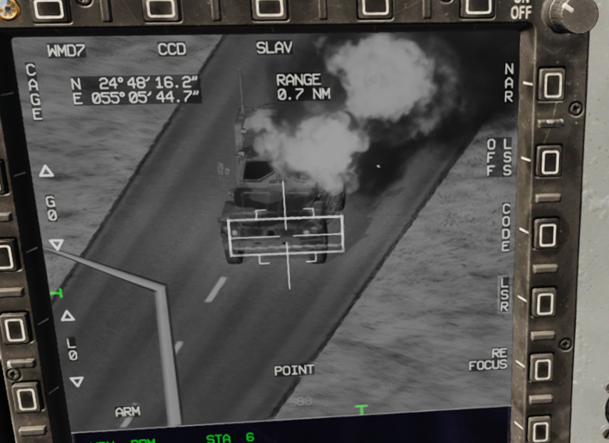 As the light dimmed though..I was struggling with my targeting pod on the JF-17. It does awesome in daylight, but I was having big problems with exposure or gain problems at night. Sometimes the picture would look great..other times I just couldn’t get it right. I flipped back and forth between CCD and IR imagery and managed to kill more targets..but I wasn’t nearly as efficient at it.