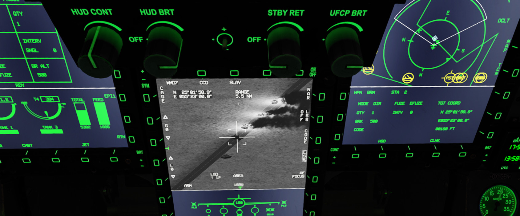 - I worked out how to use some stand-off JDAM 2000lb penetration bombs (so masculine!) and the new F10 ‘alt + click’ window (it stays in the cockpit when you leave the F10 map, it’s amazing!) for pre-planned coordinates and set some points up over the two runways.
