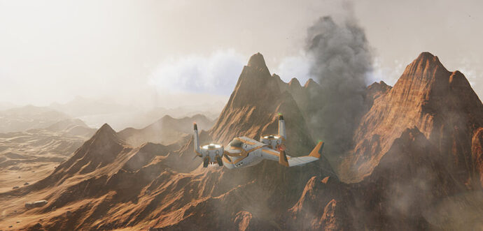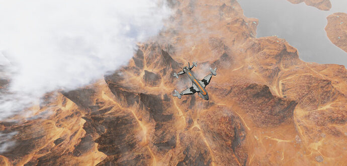 Controls can be mapped in whatever configuration you want. I used my HOTAS Warthog and Slaw Device pedals and they worked perfectly. You can even use an X-Box controller and there may even be some advantages to that given the neutral position of the X-Box sticks. I would highly recommend spending the first few hours on a throwaway campaign save slot and just spend time refining the control assignments and learning how to fly the aircraft – because it takes some getting used to. All of the ships are VTOL (Vertical Take Off and Landing) capable, and all can also transition to full forward flight by unfolding wings and tilting engine nacelles (the Scarab will require a wing upgrade to accomplish this). Flight characteristics when in VTOL mode versus airplane mode are vastly different and the transition between the two will take time to master – particularly when loaded to near maximum VTOL takeoff weight. You will crash. You will. Really. But you will learn how to fly the vehicles and after a few hours you will be flying just fine, but you’ll still occasionally crash because of bad decision making and impatience. Yes. You will.
