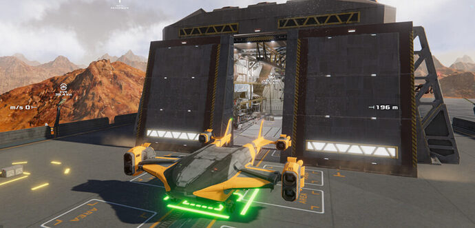 At maximum weight – it may require all of your engine thrust just to maintain a hover…while gulping enormous amounts of fuel…Just as in terrestrial flying, efficiency is usually greatly increased with altitude. The same is true flying in the FPS world. A maximum power takeoff, a quick (but safe) transition to airplane mode, and a rapid climb to the highest cruise altitude where throttle can then be reduced, is the most efficient use of fuel. Of course, the environment may conspire against you with low SKI levels, high winds, or thunderstorms or cyclones. There will be times when your plan just doesn’t work out and you may need to divert to a closer base. There is also a contingency if you run out of fuel to land off base (you must land before running out of fuel) and call in a service drone to refuel or repair your ship. This can be expensive, but is sometimes necessary if the SKI level is lower than your destination altitude (this happens on occasion).