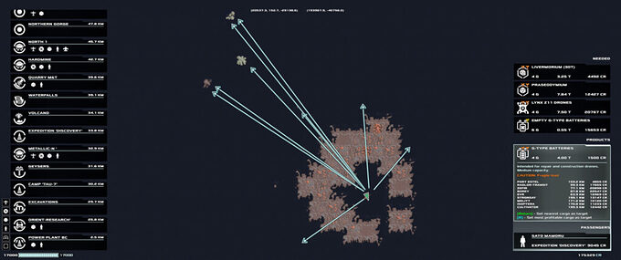 Each vehicle has the capability of carrying passengers and/or cargo. Enterprising Frontier Pilots will quickly learn to combine loads and passengers to maximize profit when planning flights. During the execution of missions, you can also load other cargo if you have the space to double up. Be careful though – some missions require expedience, so stopping to make a buck might cost you in the long run. Cargo can be loaded or unloaded at any point on the map, but most of your transactions will occur on the passenger or cargo landing pads at the various bases across the map. Cargo capacity is limited in both volume and weight depending on the ship and configuration. There is a nice loading crane sequence each time you load or unload cargo and passengers will request the loading ramp to be opened or closed as they get on or off the ship.
