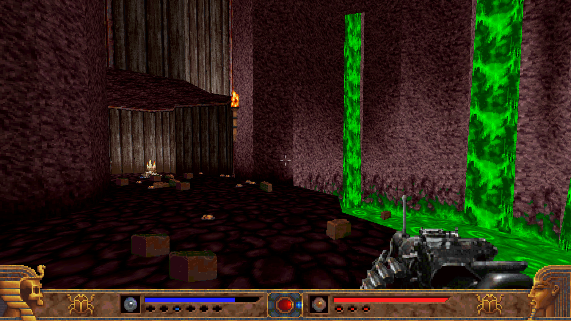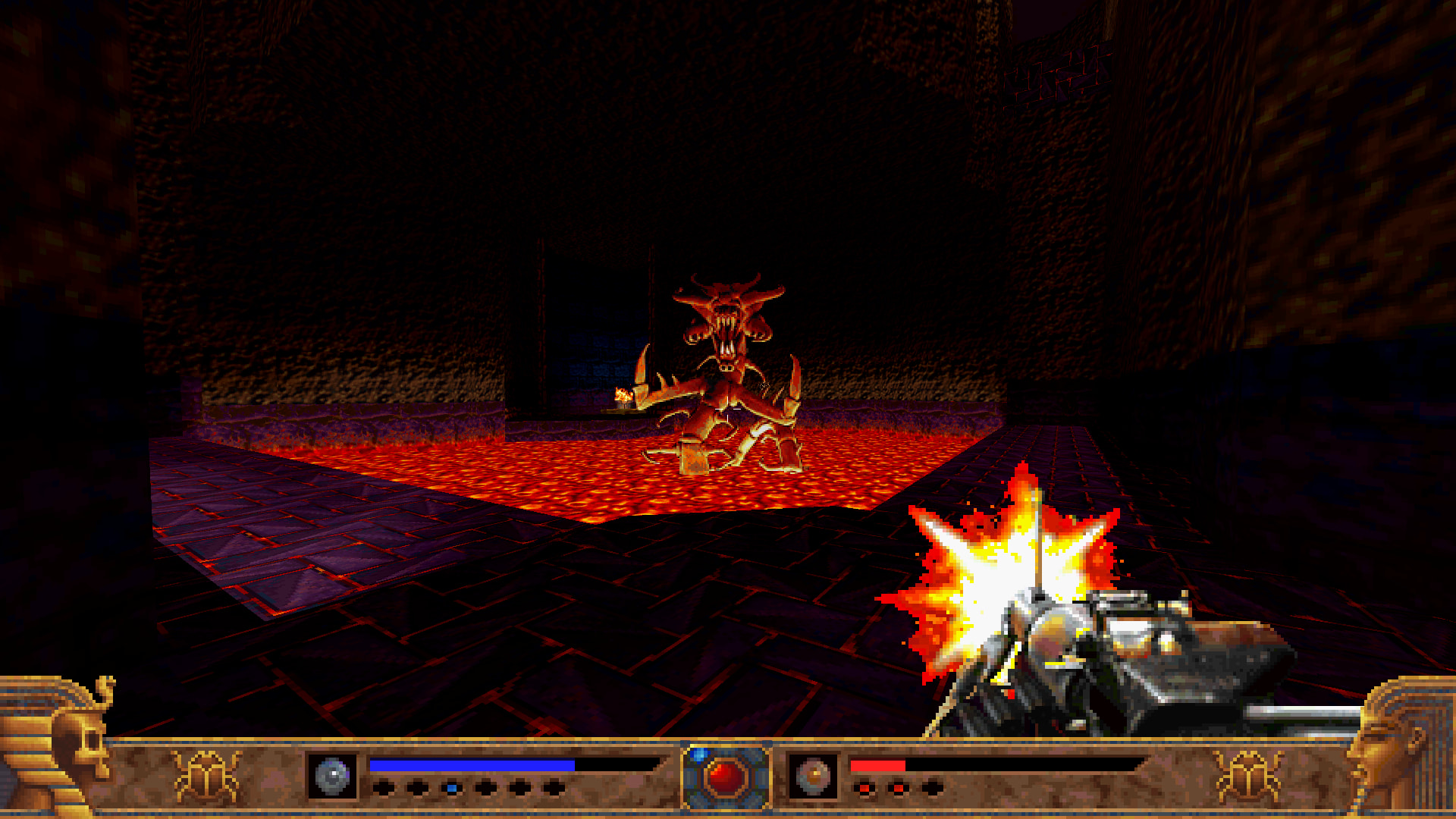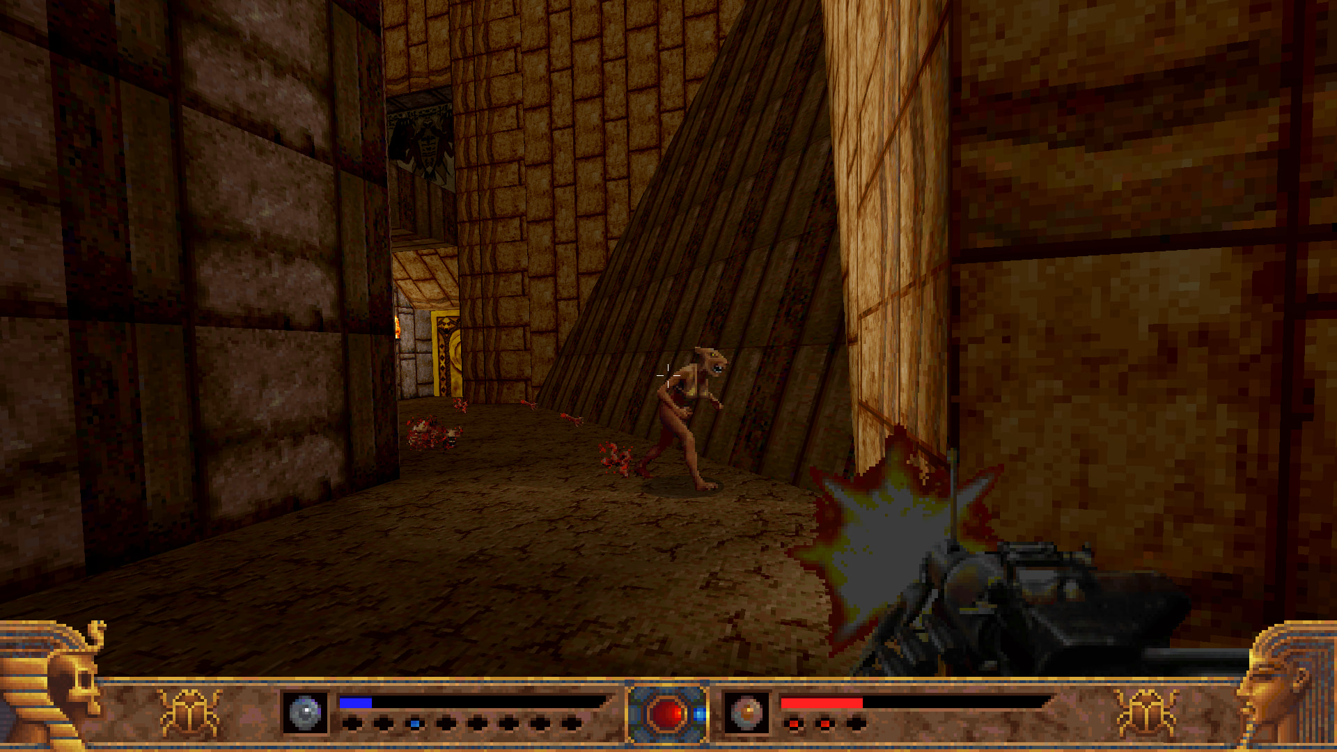 Enter Nightdive, they released a fantastic remaster of this game called Powerslave: Exhumed. Fantastic name since it distinguishes itself from the original titles while not calling itself a remaster, Exhumed was the EU name for it, and it brings to mind the archaeologic exhumations that inspired this game.