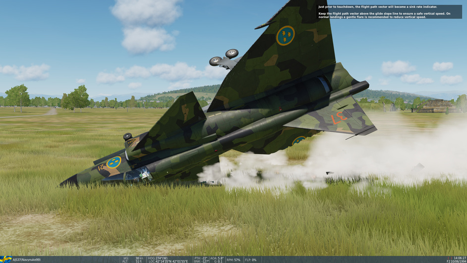 On the subject of landing the Viggen (please note these are not approved procedures just how I do it):