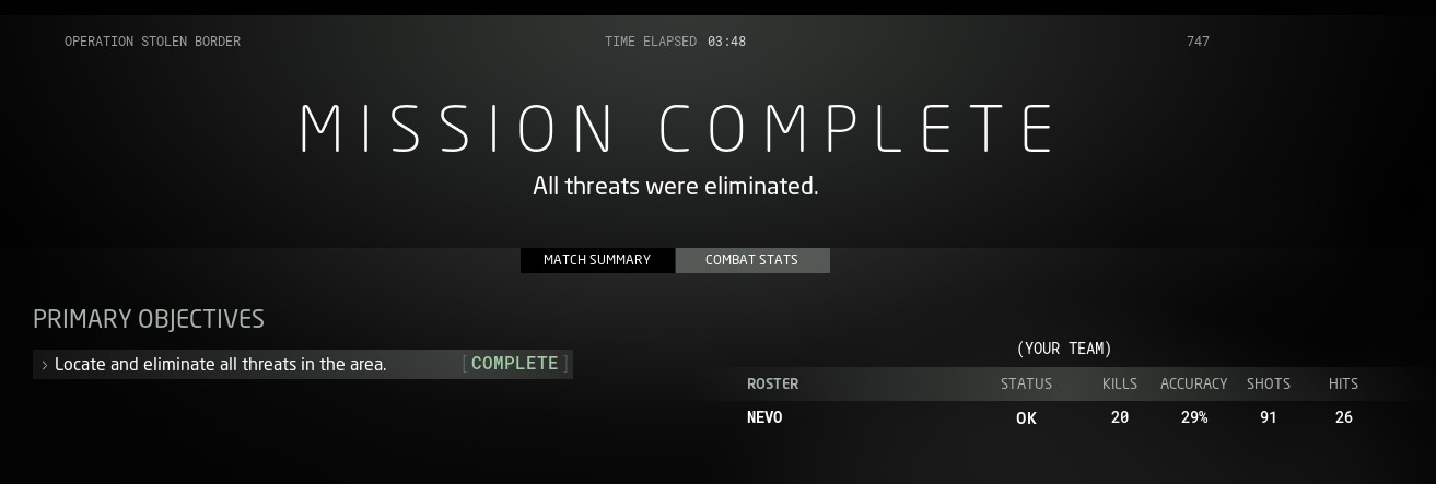Kind of funny, if you notice the number of shots fired, and the number of magazines in my loadout… Yeah, the last two were with my handgun….