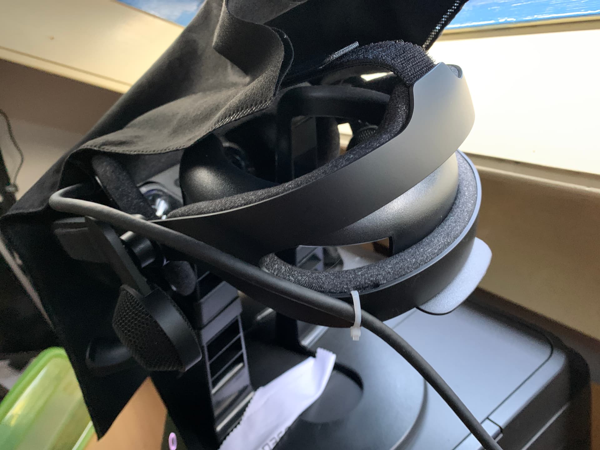 Also, perhaps obsolete, make sure the plug into the headset is seated correctly (it is overlooked my many still) and to prevent it from being pulled loose, I’ve created some ‘play’ in the cable alongside the headset and clamped the wire with two tie-wraps. See picture.
