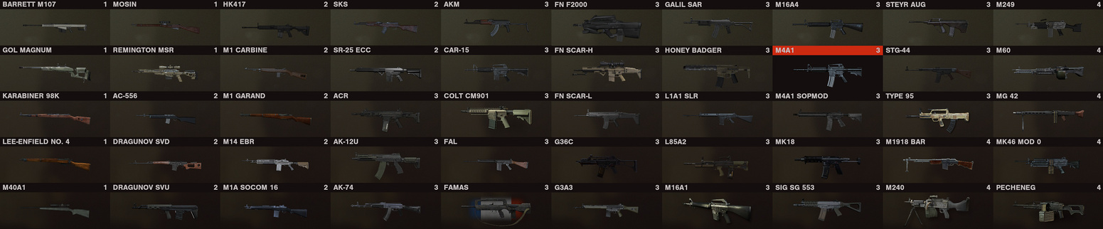 I left out the RPK and the RPG-7 because they didn’t fit in the matrix. ![]()