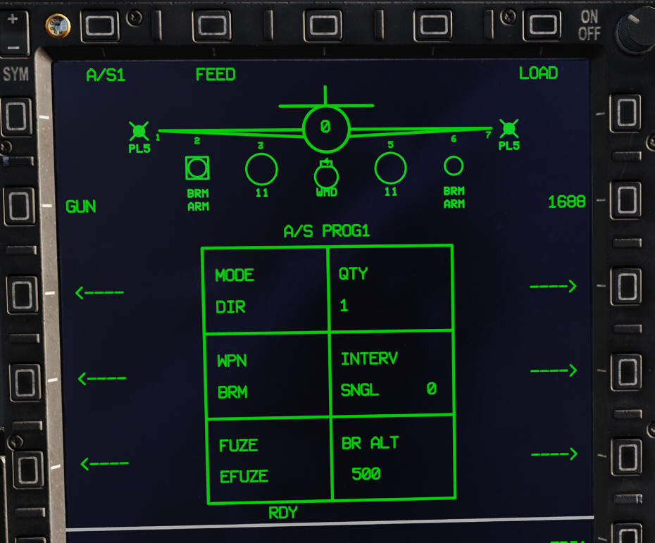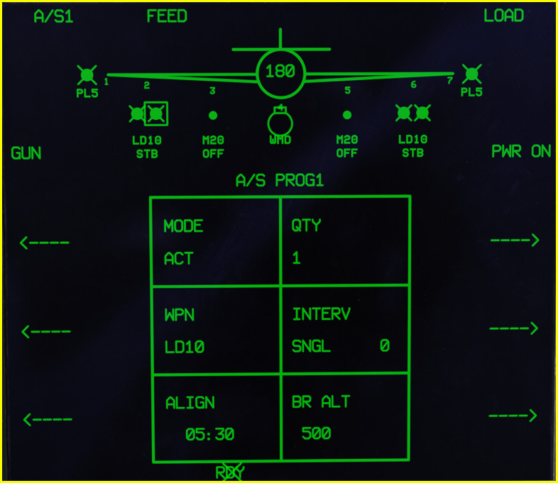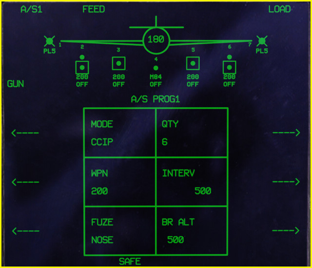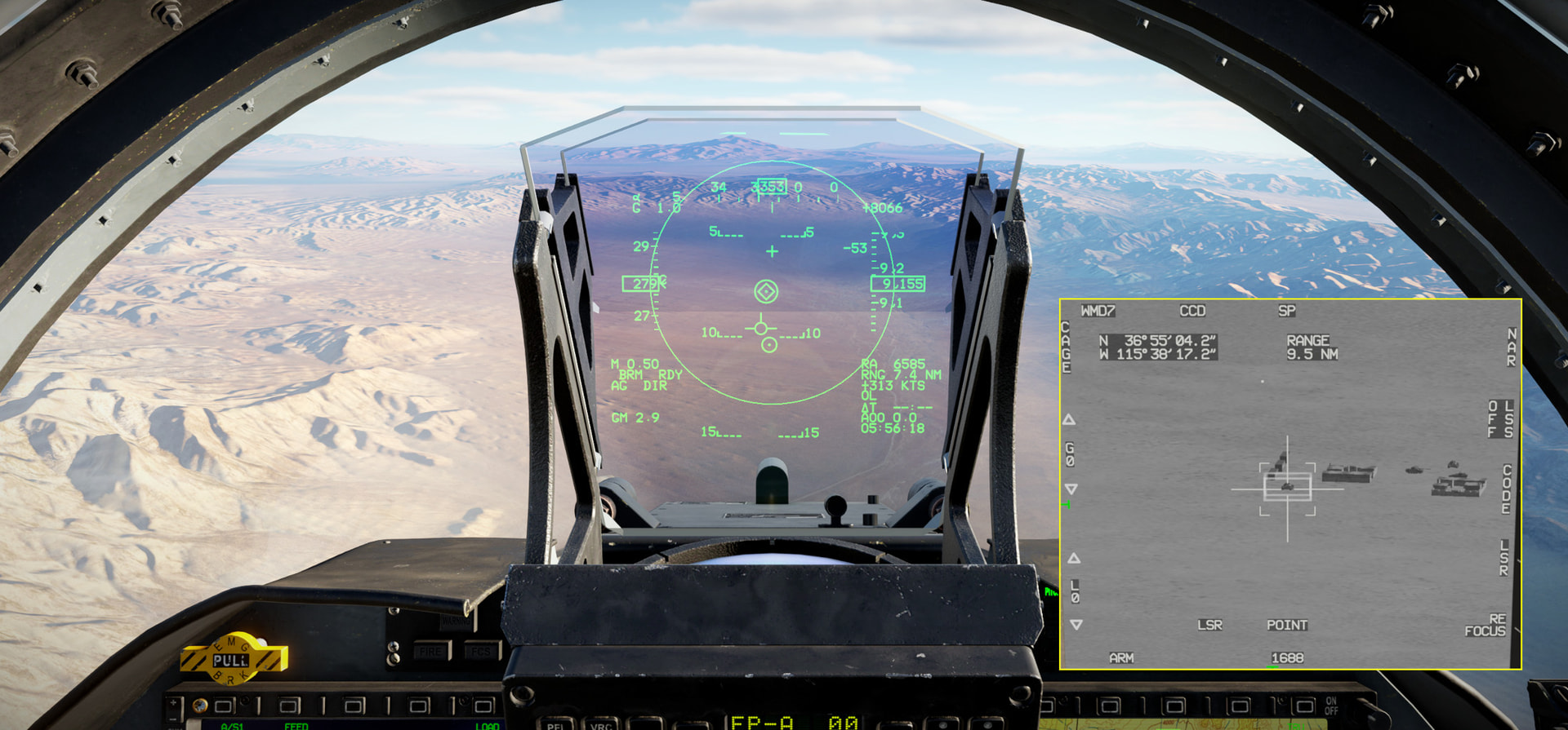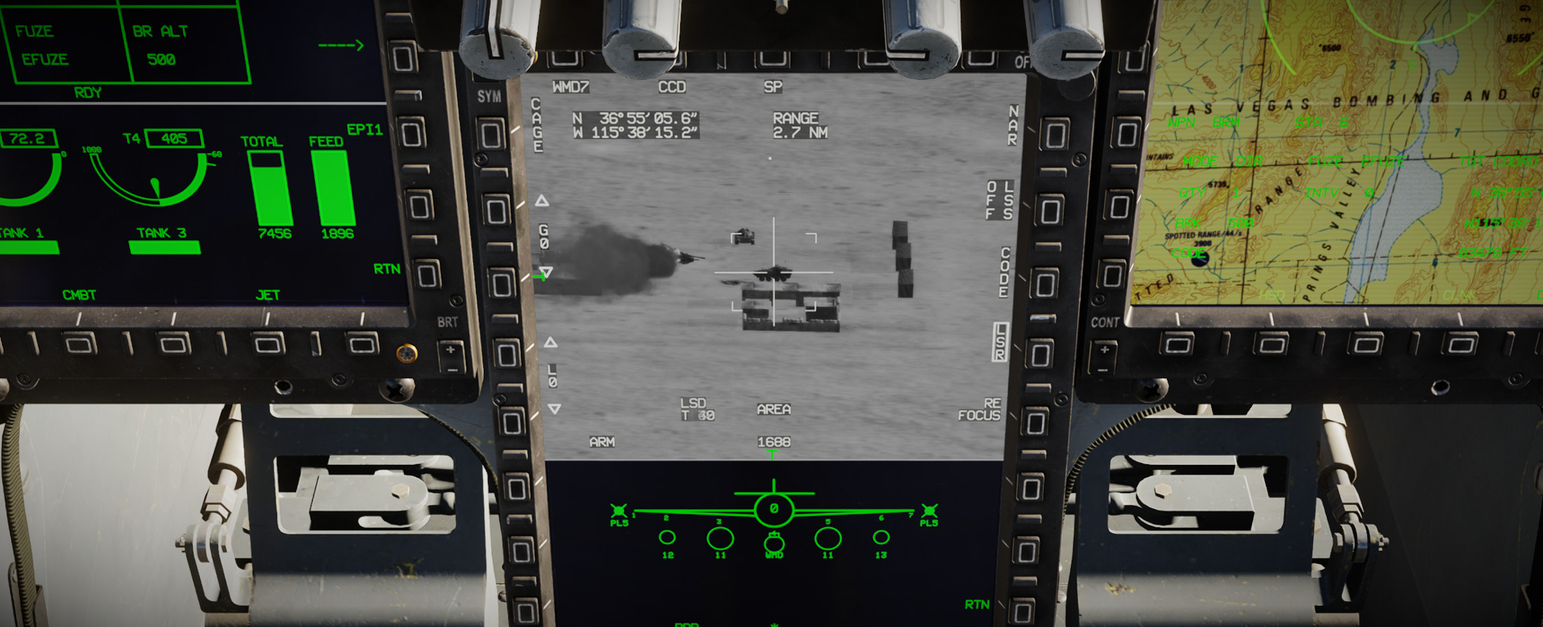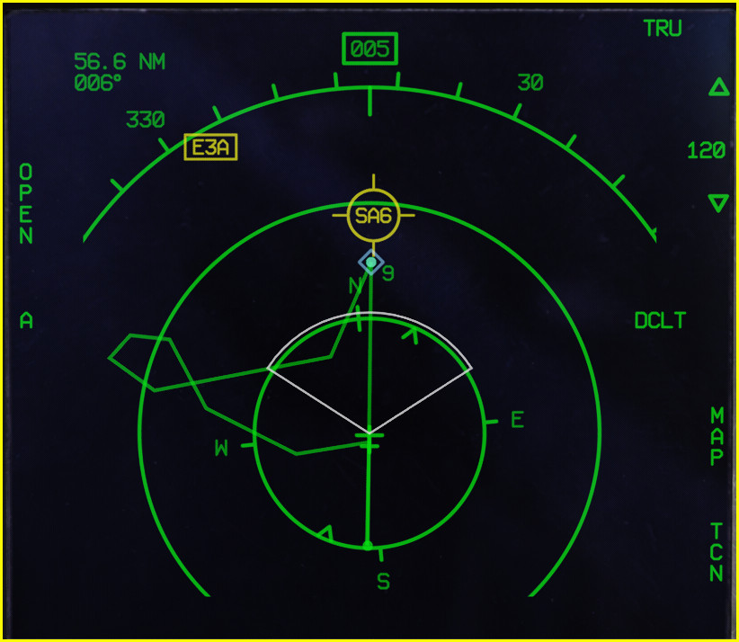 The Horizontal Situation Display (or TSD?..no idea..) overlays the map, waypoints, sensor location, and also threat symbols. It is worth noting that the threat symbols aren’t collocated with the actual threat on the map..think of it as a RWR display with inner, middle, and outer threat rings.