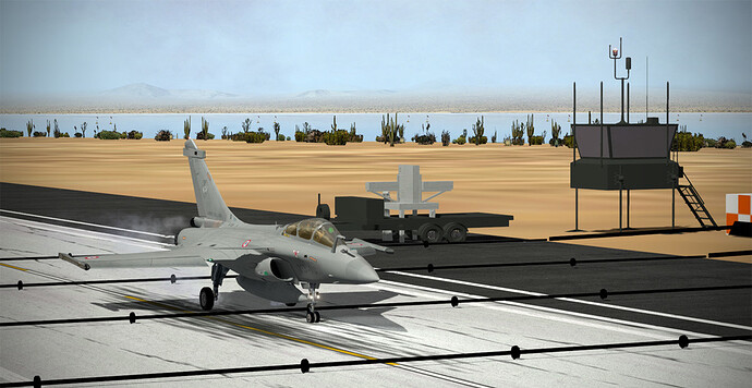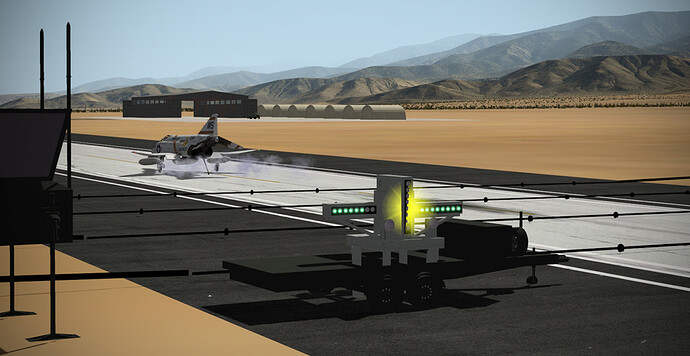 At this point, I’ve got it hovering below the terrain such that it appears to be on top of the temporary ATC tower trailer. The yellow ball doesn’t really move up and down reference the datum…but the ball changes color based on your above (green), on (yellow), or below (red) glidepath… I’m trying to tweak it to get it to take you to the 3-wire…and I think I’m pretty close. Still lots of work to do on KMUD…but she’s coming along!