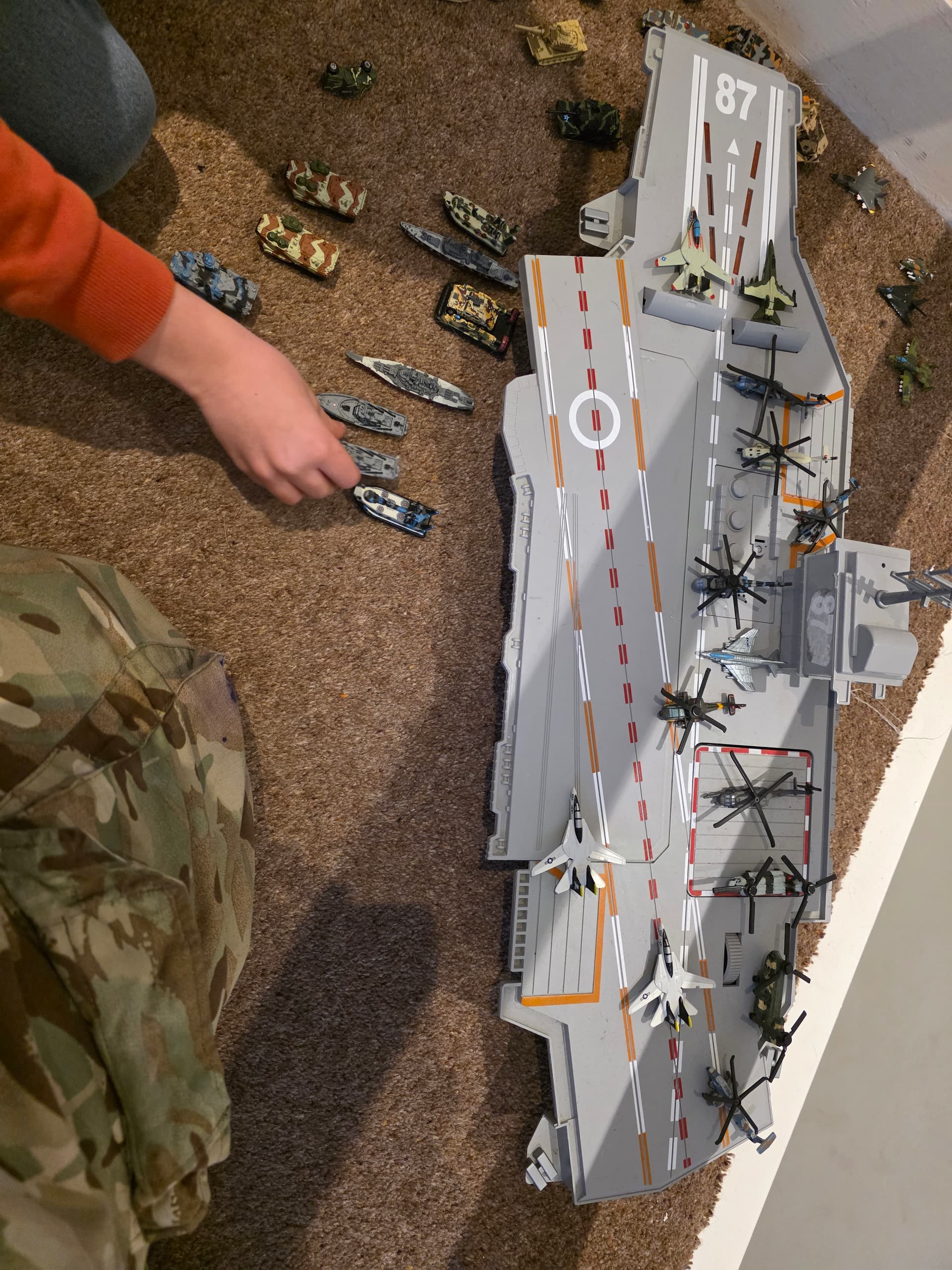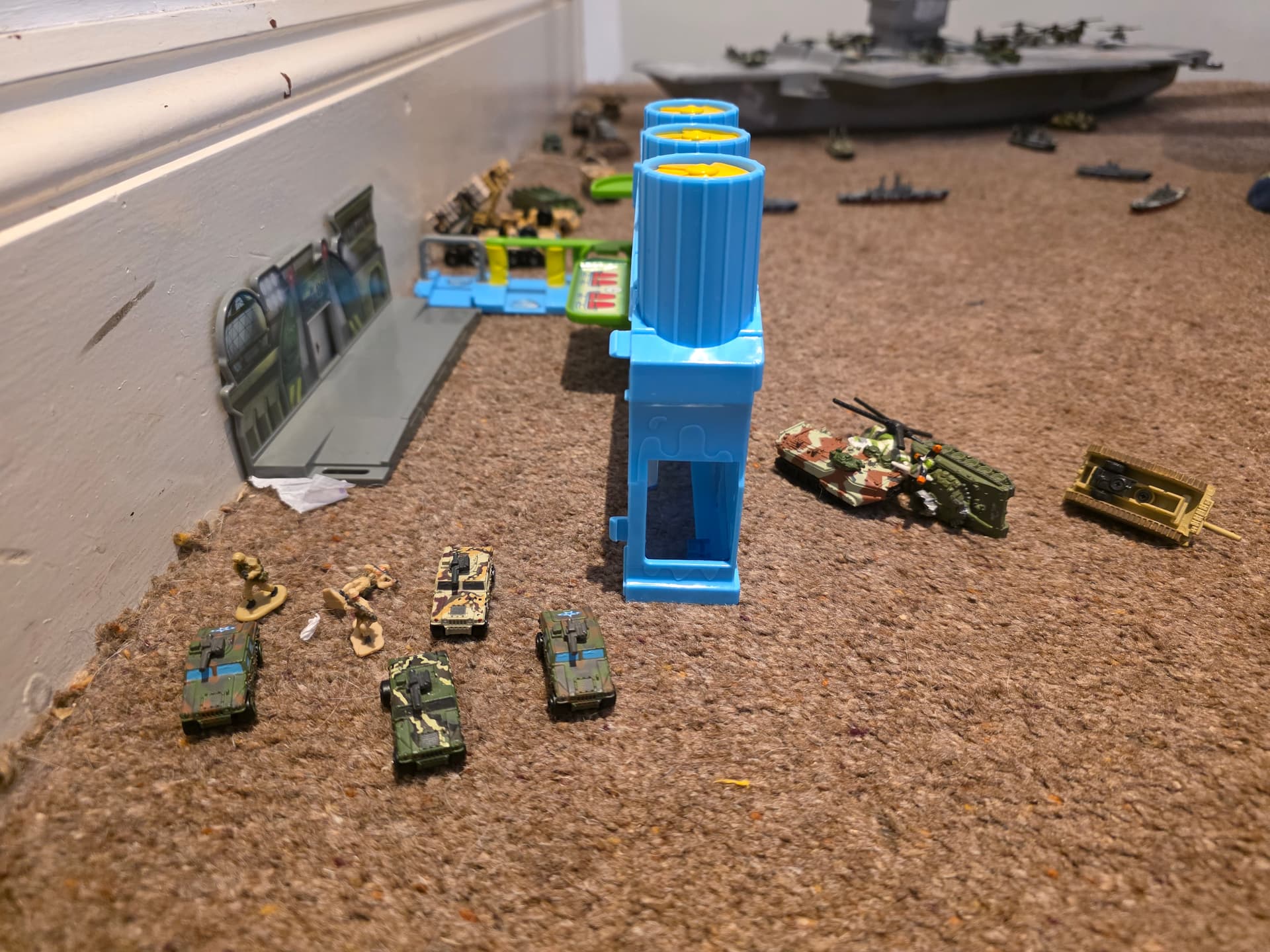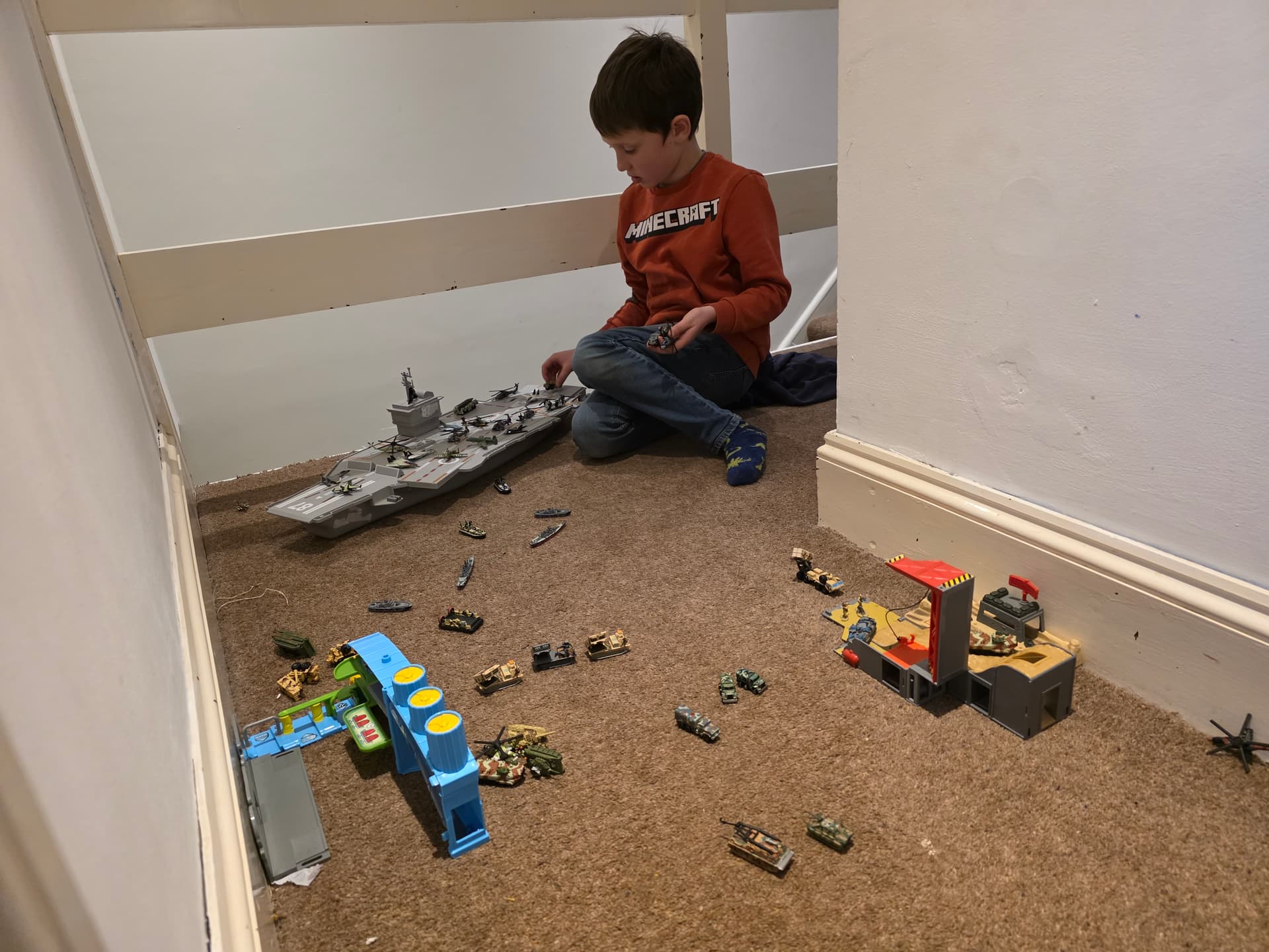 Regardless, i bought him some actual playsets last year that he wasn’t really bothered with. However now we have some serious military hardware, we played this evening and took over his “micro machine van city” and then fought of a counter attack.