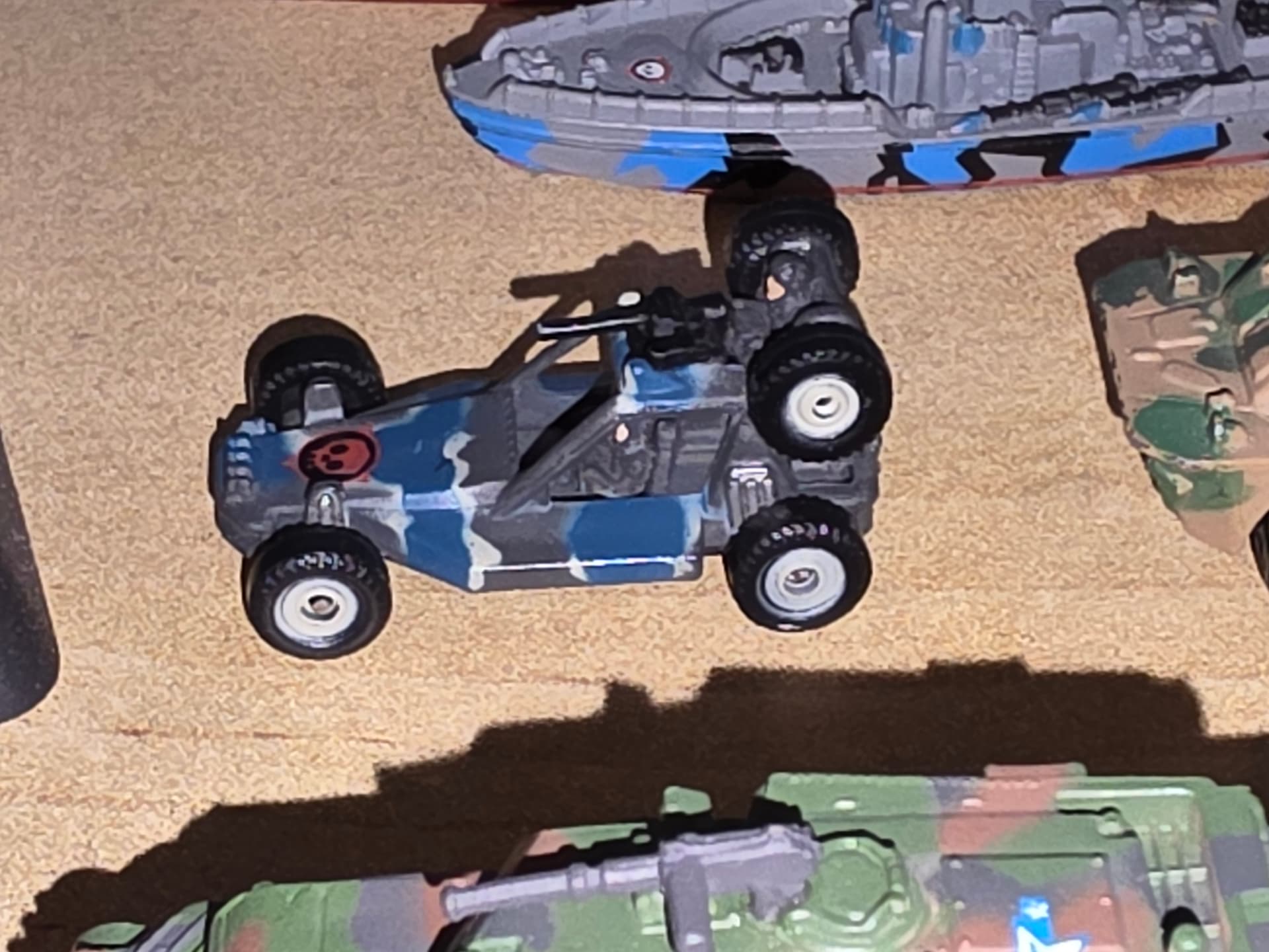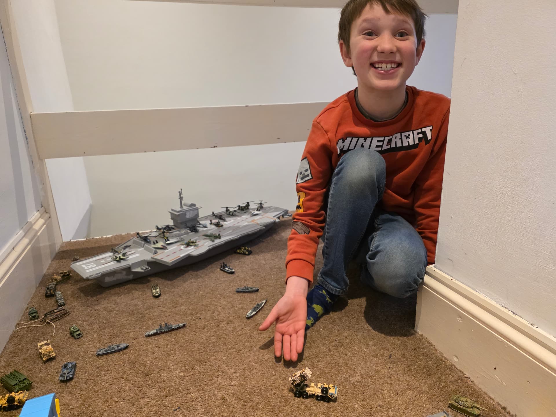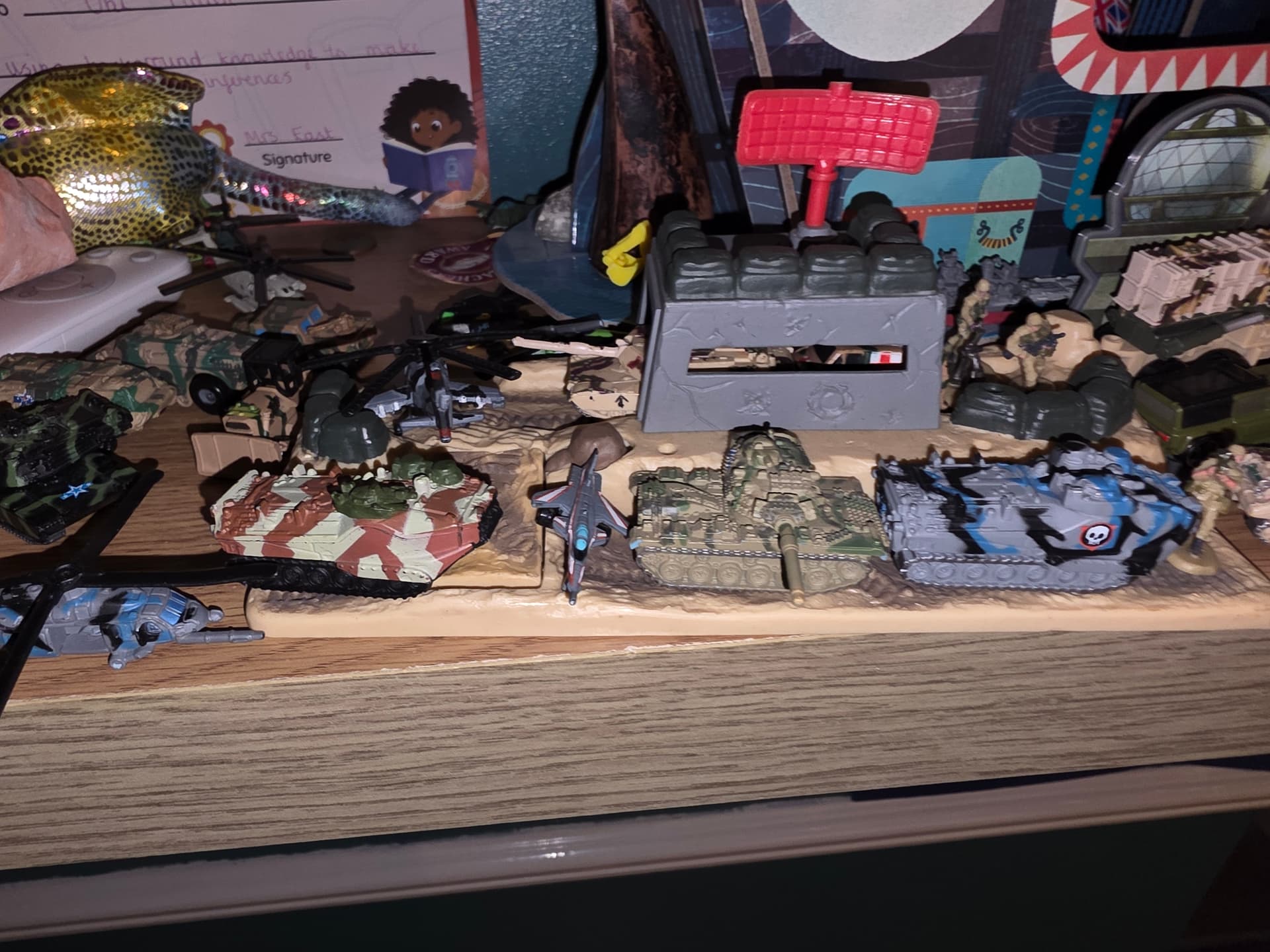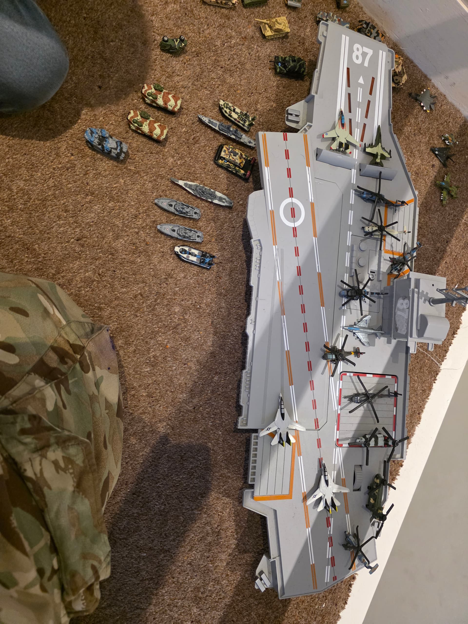 Regardless, i bought him some actual playsets last year that he wasn’t really bothered with. However now we have some serious military hardware, we played this evening and took over his “micro machine van city” and then fought of a counter attack.