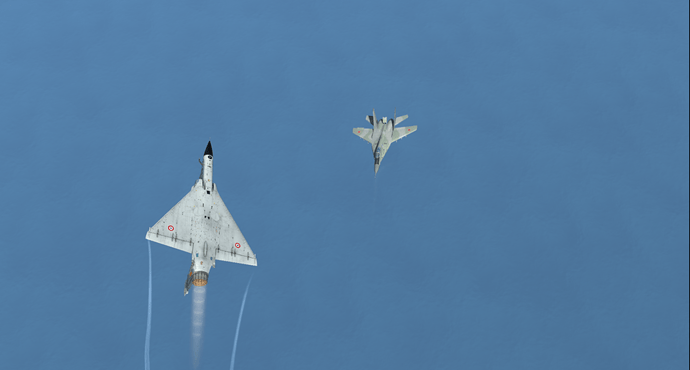 Did some fighter practice against a MiG-29A. I figured it would be a good opponent as both planes entered service in 1982 although I believe the exact Mirage modification we have is slightly more recent.