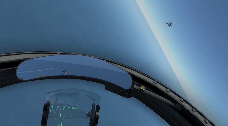 However it turns I wasn’t quite dead yet! At first I thought my engine was out as I was doing about 80 knots. But everything turned out to be in working order. Meanwhile the MiG appears to recovering from his own stall and is on his way back down. Time to reverse the roles and chase him.