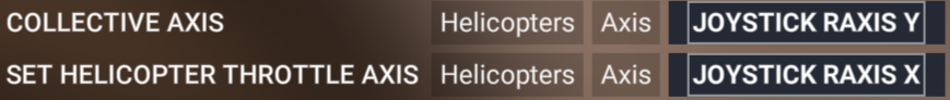 I mapped Throttle axis. Nope! That competed with the collective axis. I then mapped Throttle 1 axis. Nope, not that one either. No, the correct control to map is the Set Helicopter Throttle axis…