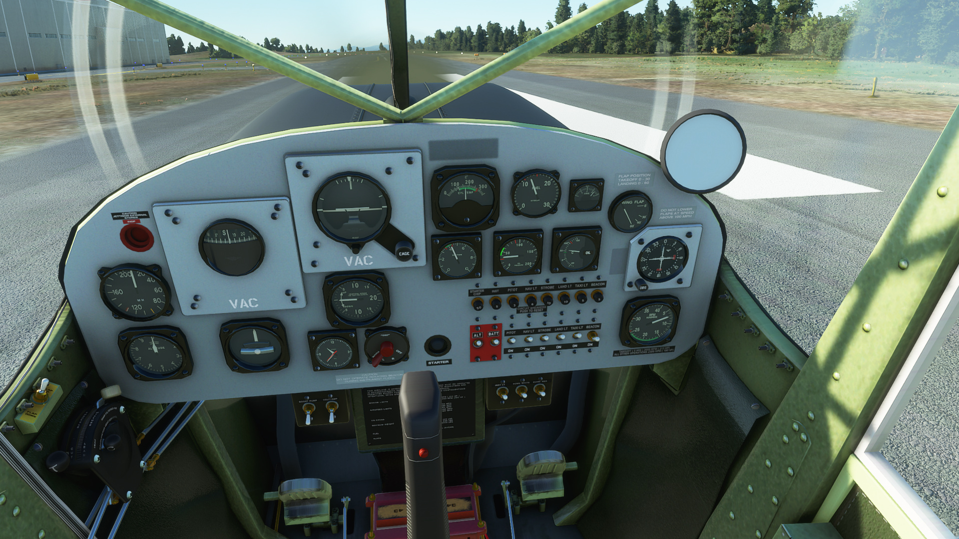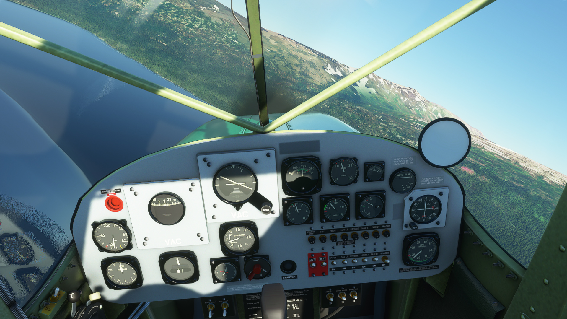 There are quite a few switches that are not working, including the battery switch. The same goes for the start button. To start the engine, you just make sure the mixture is rich and turn the magneto switch to both.
