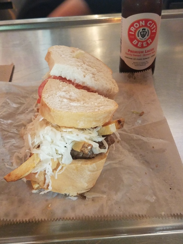 In Pittsburgh, and apparently this is what the locals eat. Instead of having a sandwich with fries and coleslaw, you put them all on the sandwich.