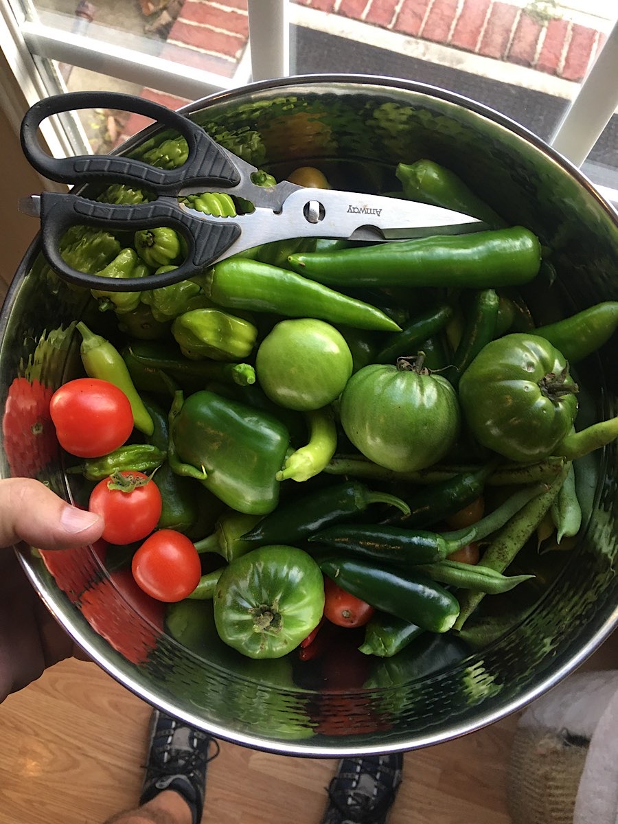 So we had our last pull from the garden for the season a couple of days ago. Our weather had been flirting with freezing…but generally staying a few degrees above freezing with some warm days sprinkled between. As a result, our peppers were still doing pretty good…but the past couple of nights we’ve dipped a few degrees F below freezing and that has finished the summer garden for the year. It was still producing a good number of tasty peppers.