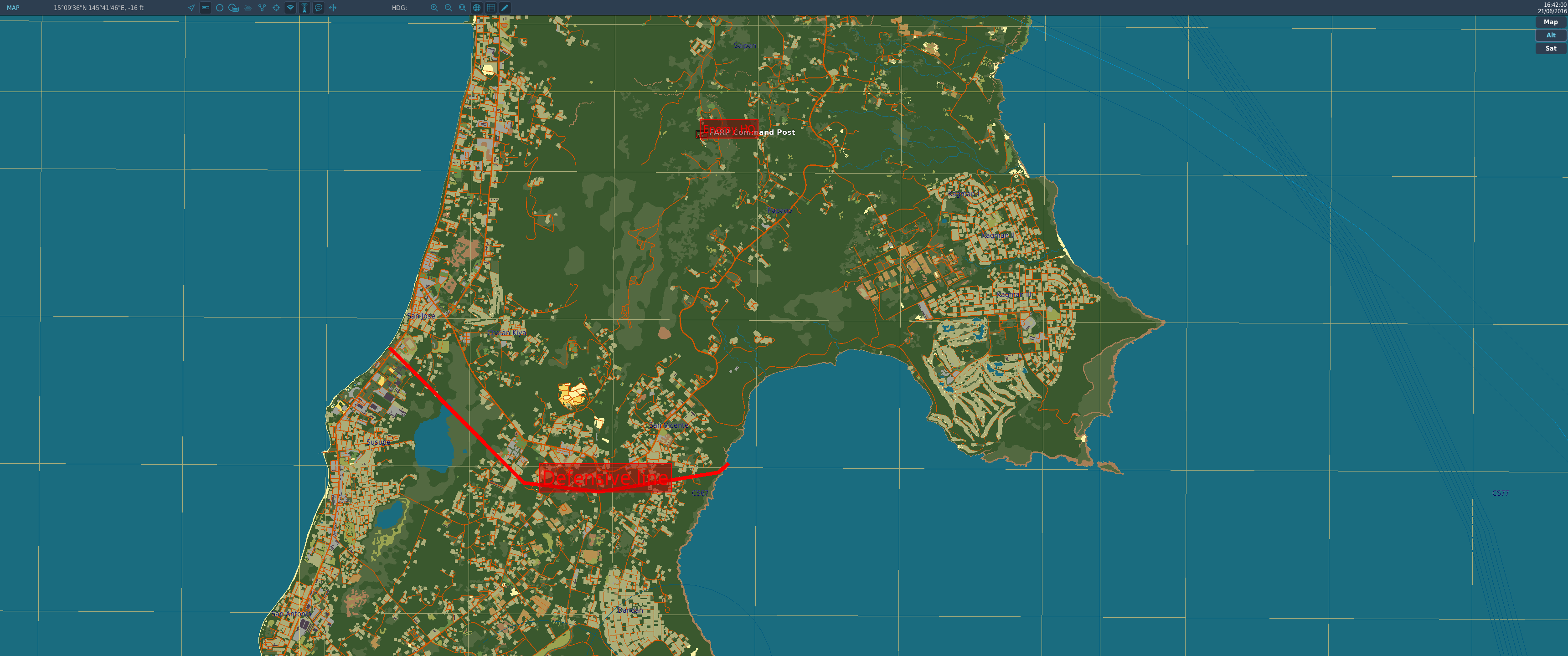 After the succesful operation to take the airport we now have to move troops from the ships to engage the enemy towards the defensive line. We have 2x C130s bringing in light armour to help in our push. We have access to artillary on Tinian with the range to engage targets along the defensive line. It is important to degrade the enemy anti air threats to help our transport planes stay safe on the landing part of the flight.