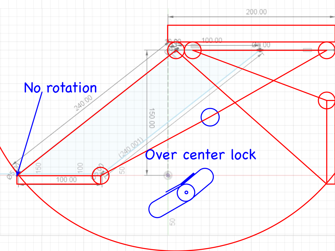 Make an over center locking joint for the back leg and mount the front leg to the joystick plate with a constant angle.