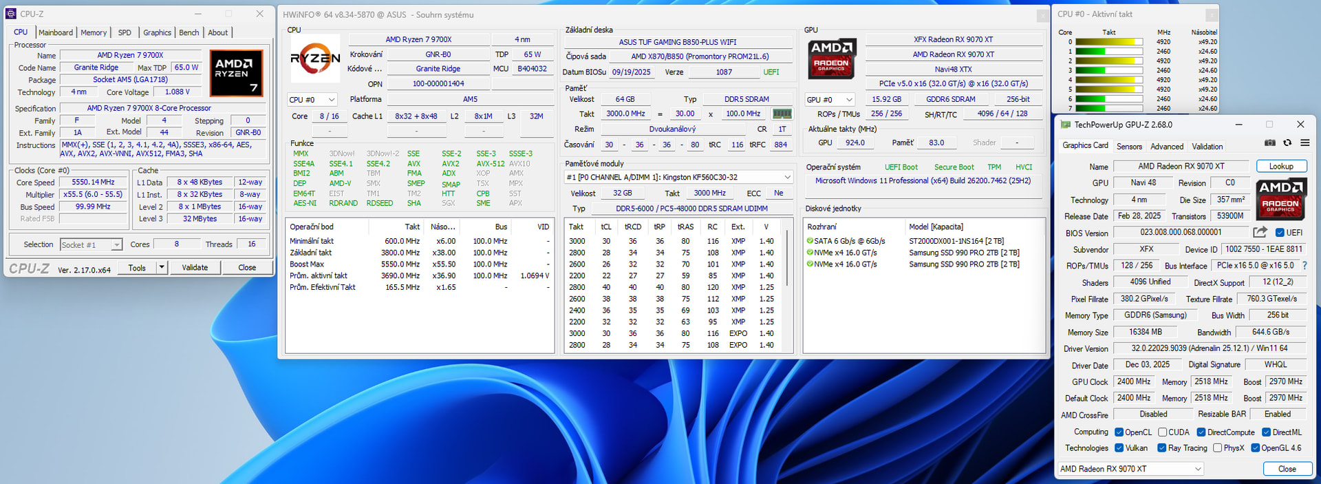 The performance of the AMD RX 9070 XT is incredible, better than the RTX 5070 Ti for less money. The XFX Gaming version of this GPU is quiet and cools very well, including VRAM, etc. Not a big surprise due to the massive cooler.