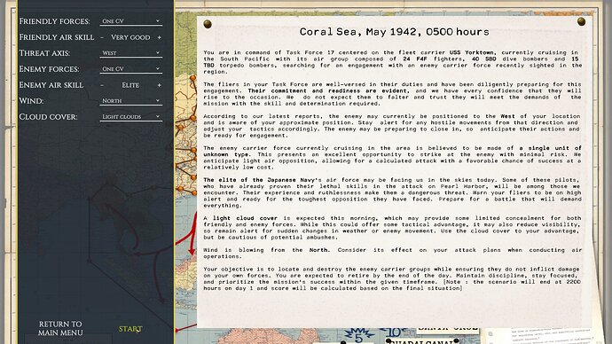 Our scenario selection / briefing screen / loading screen system is now operational. It allows for handy extensive editing of the briefing details using markdown & is provided w/ an embedded video player allowing MP4 to be played in order.