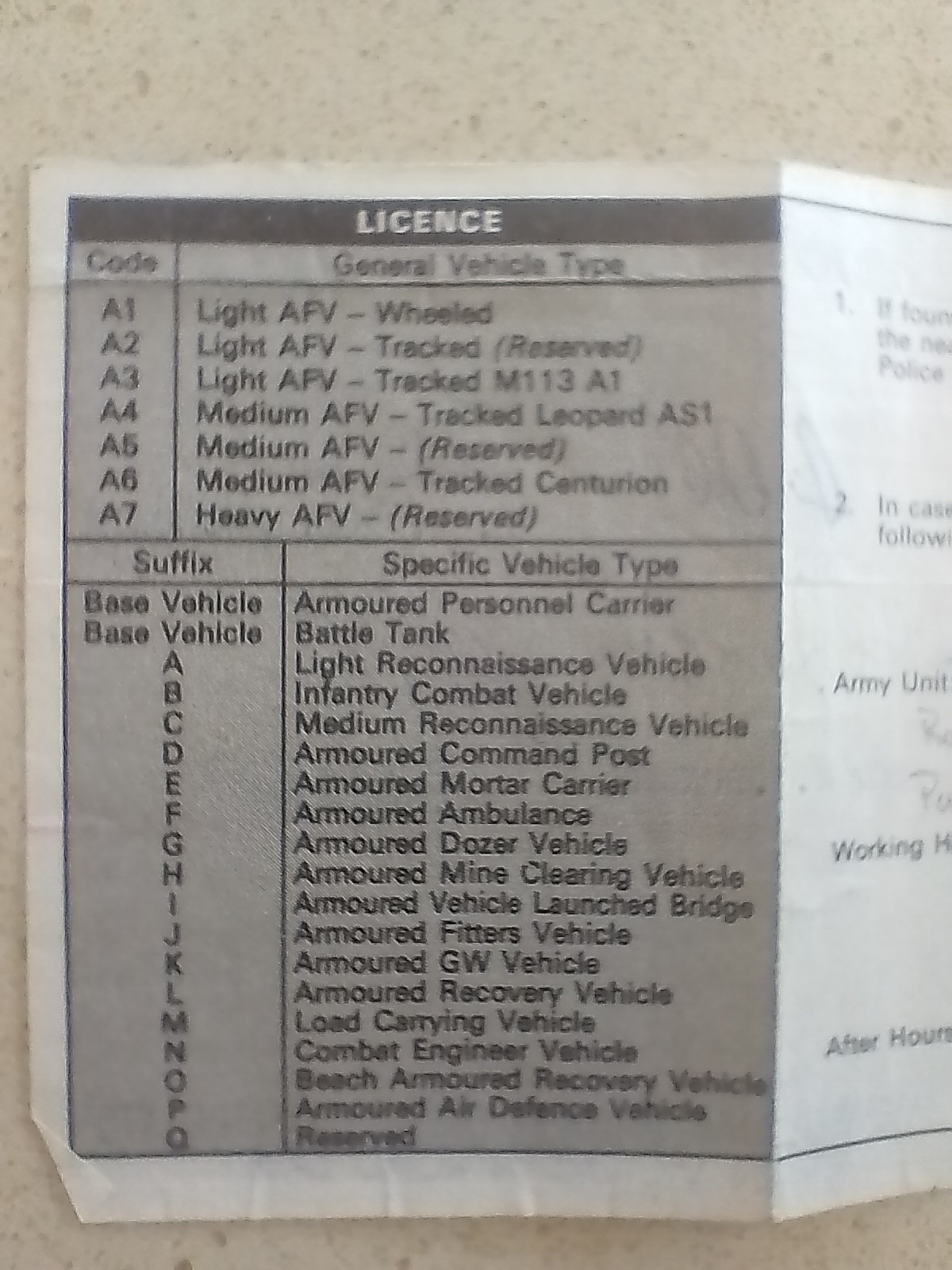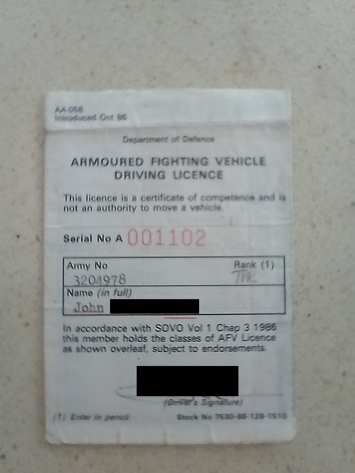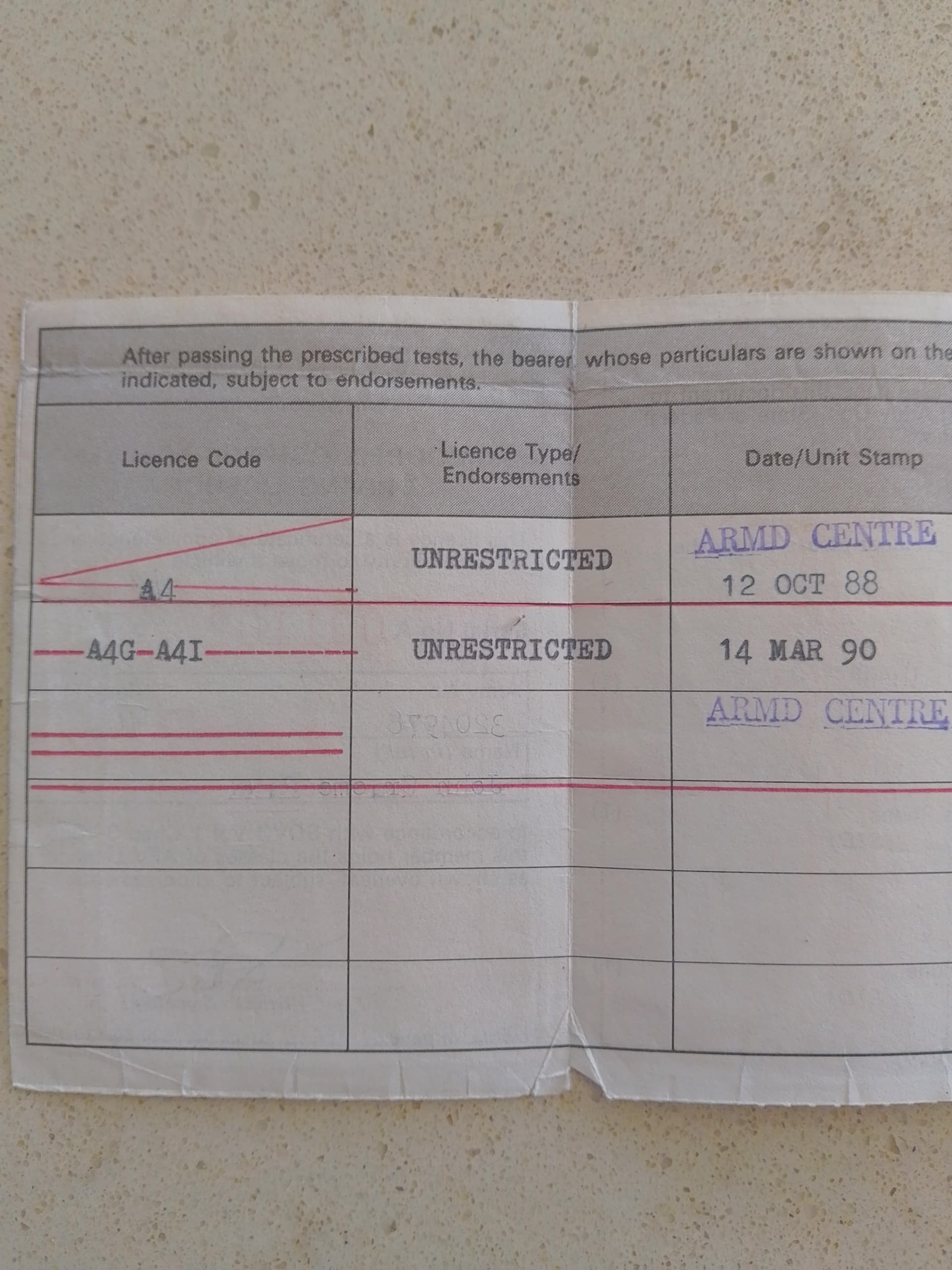 My A Vehicle drivers licence