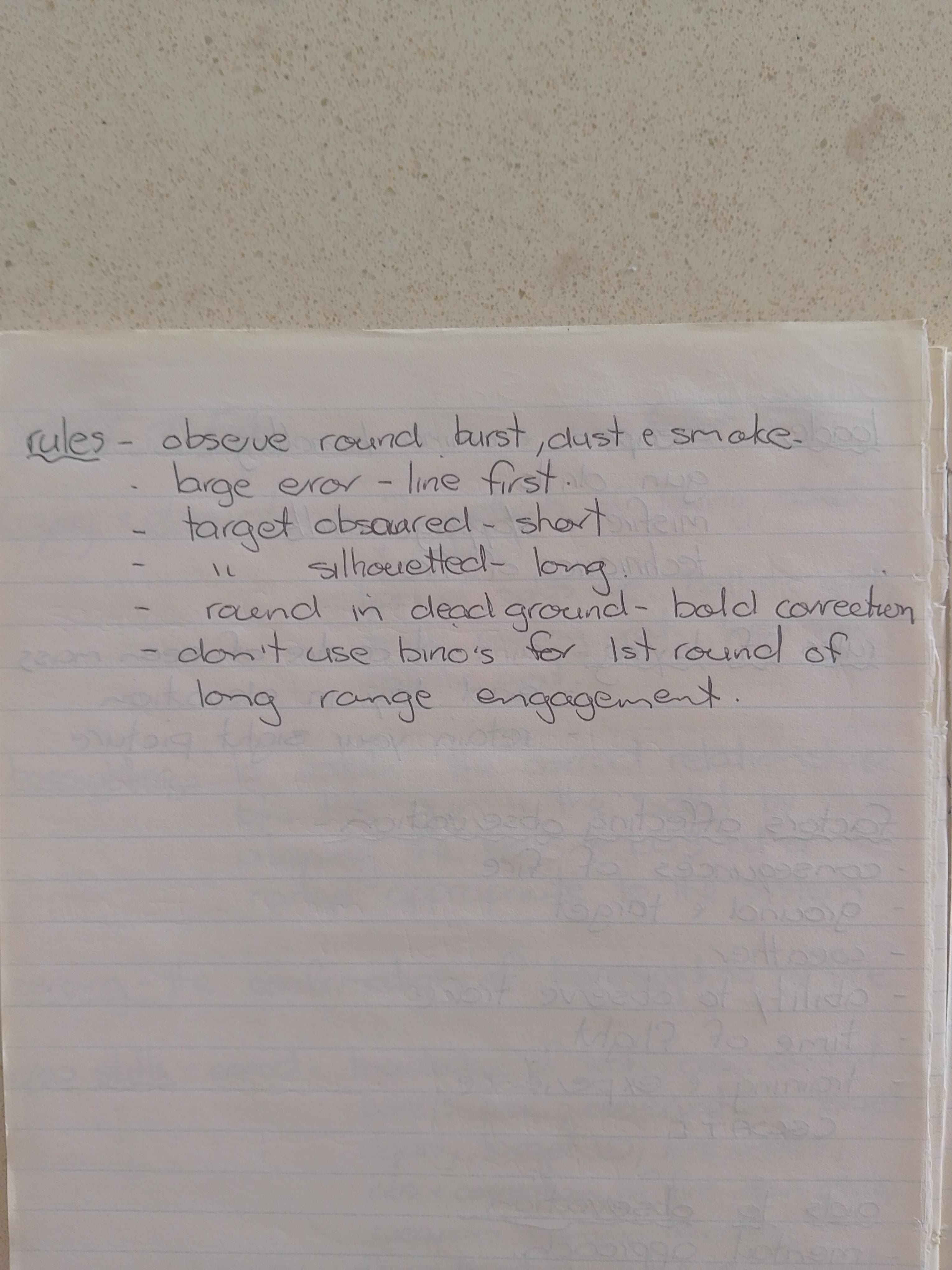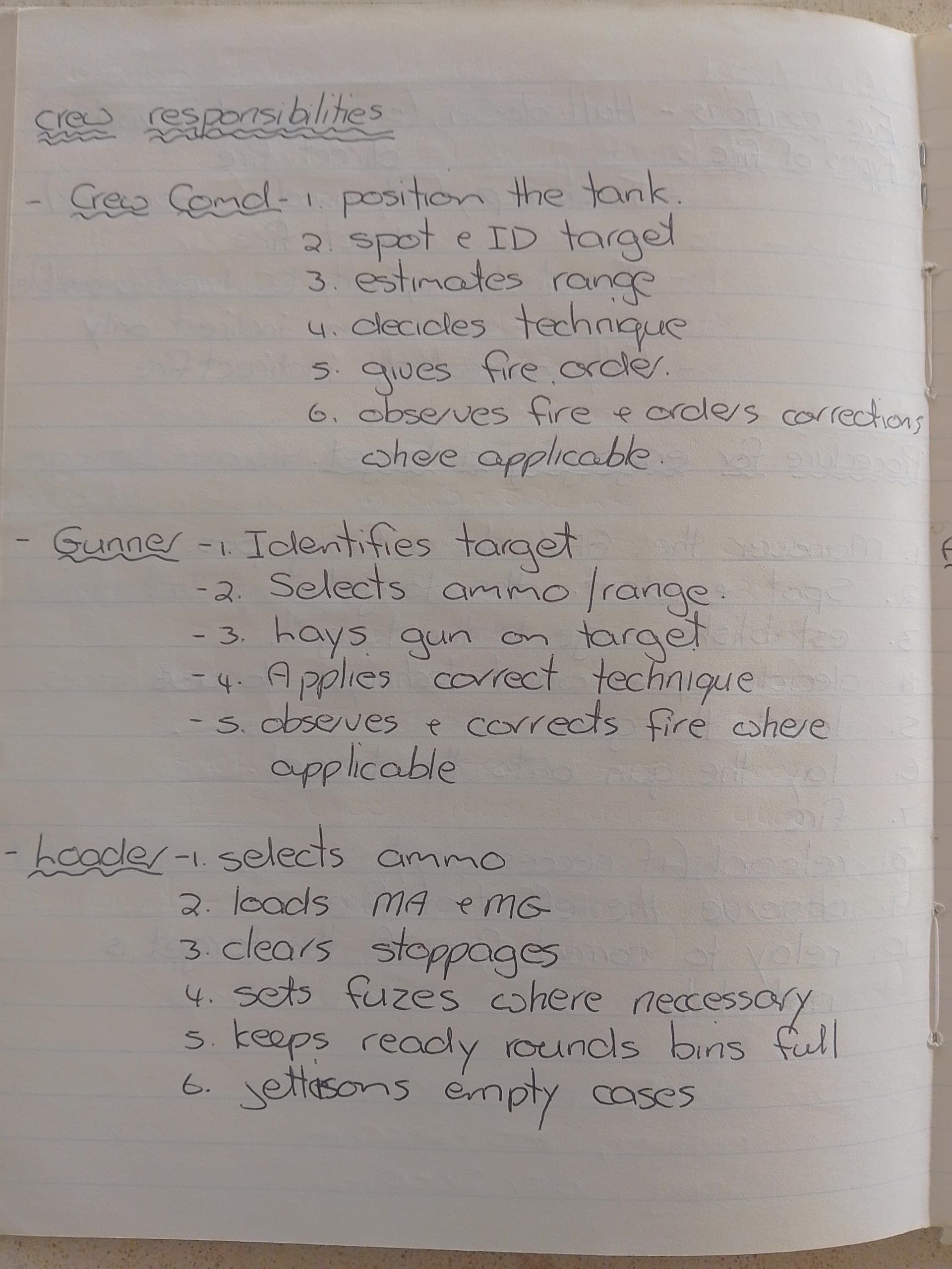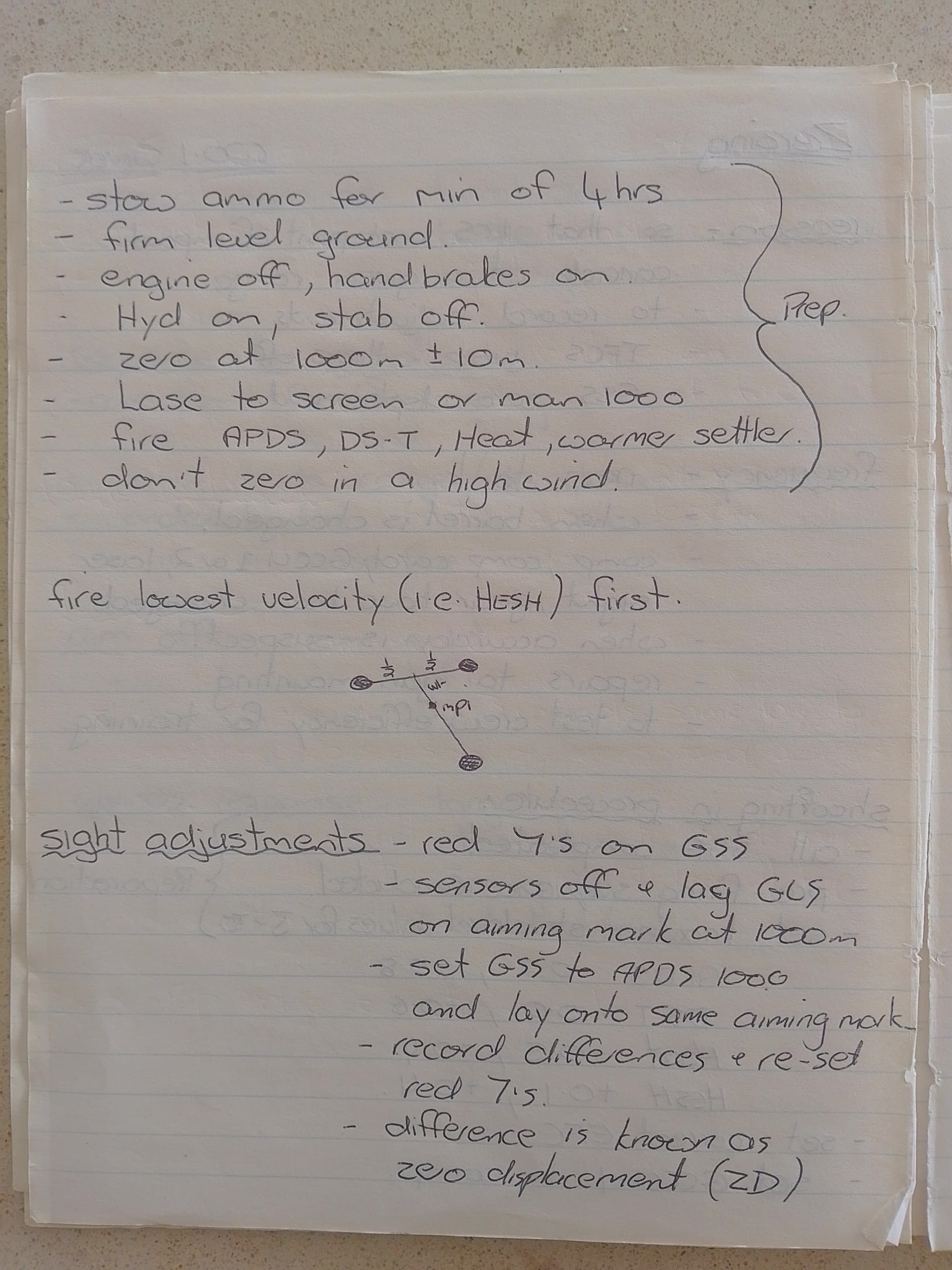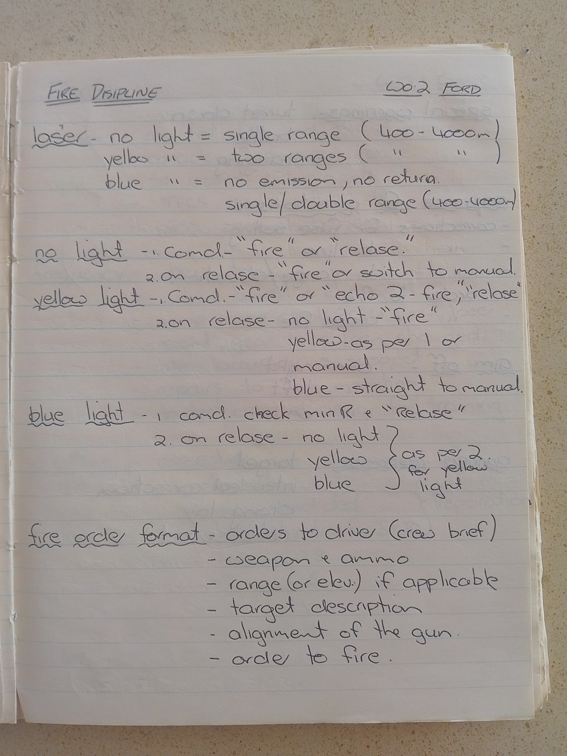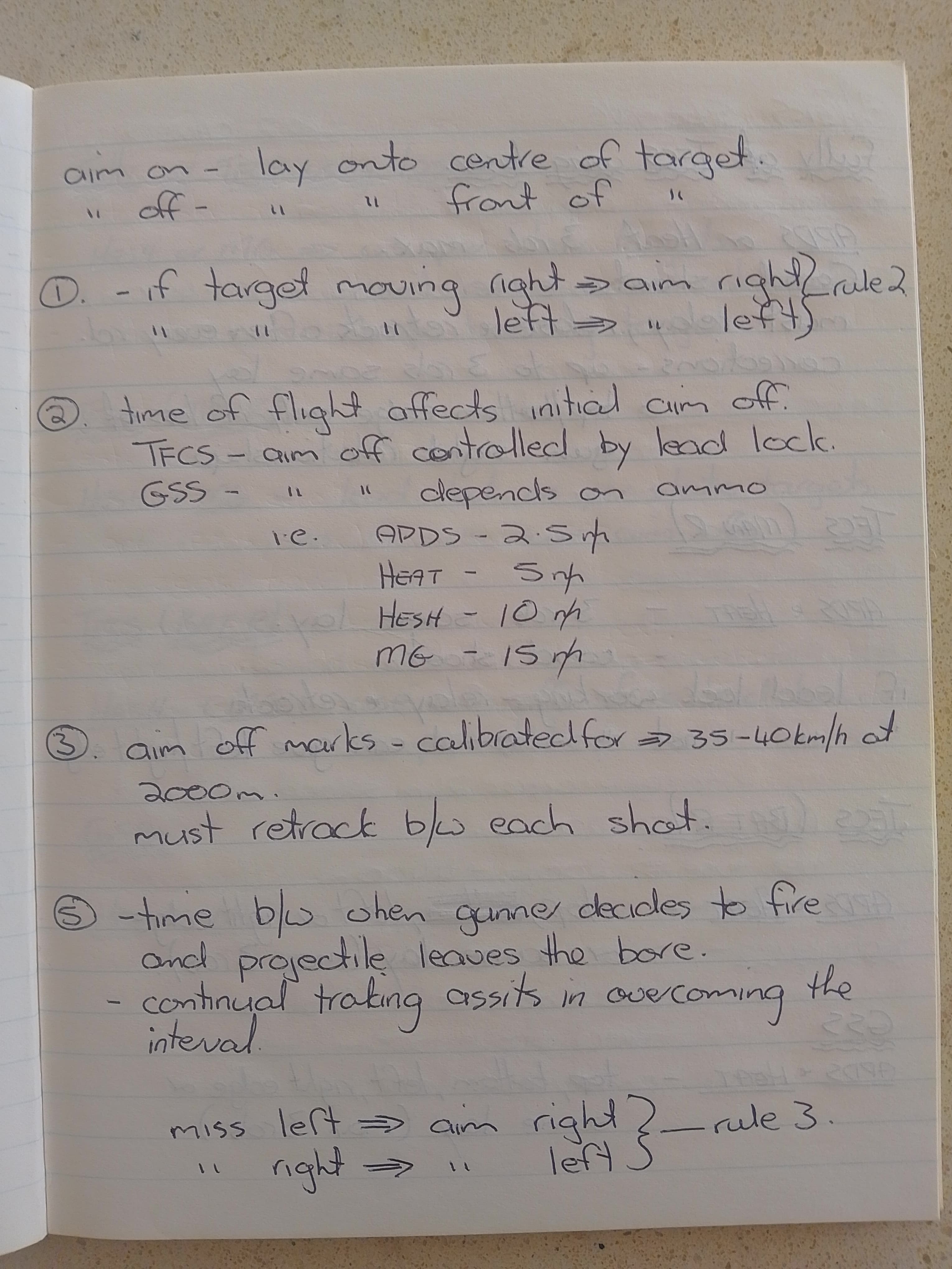Because my old notebook has generated more interest than anticipated here are some more pages. Not everything, but the most interesting and kind of applicable to GHPC. I am missing some pages e.g. HEAT Direct, but I am pretty sure that except for the characteristics and range limitations it was basically the same as HESH.