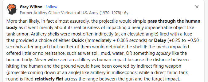 That said I remember in Black Hawk down an RPG got stuck, unexploded, inside a guy after penetrating the truck door… so definitely there’s a certain level of force necessary to trigger that fuse.