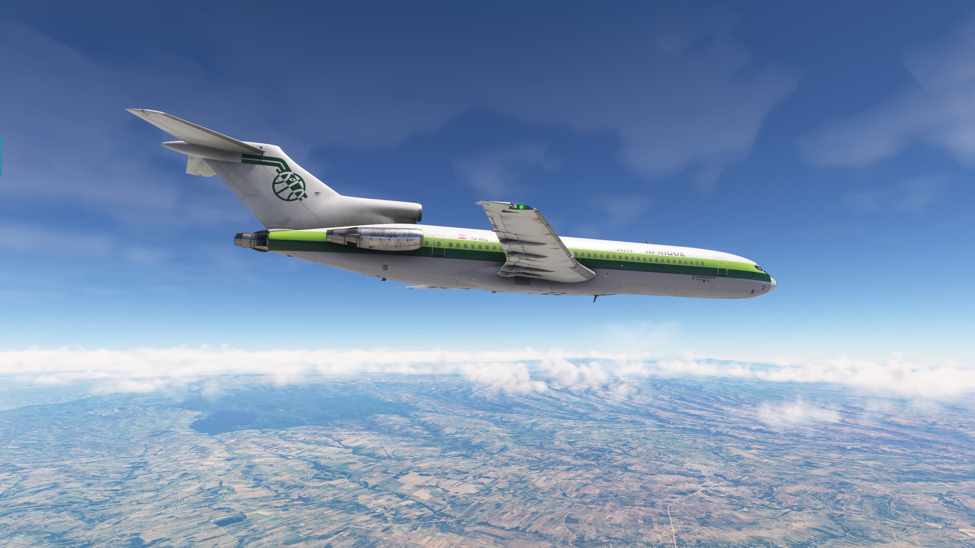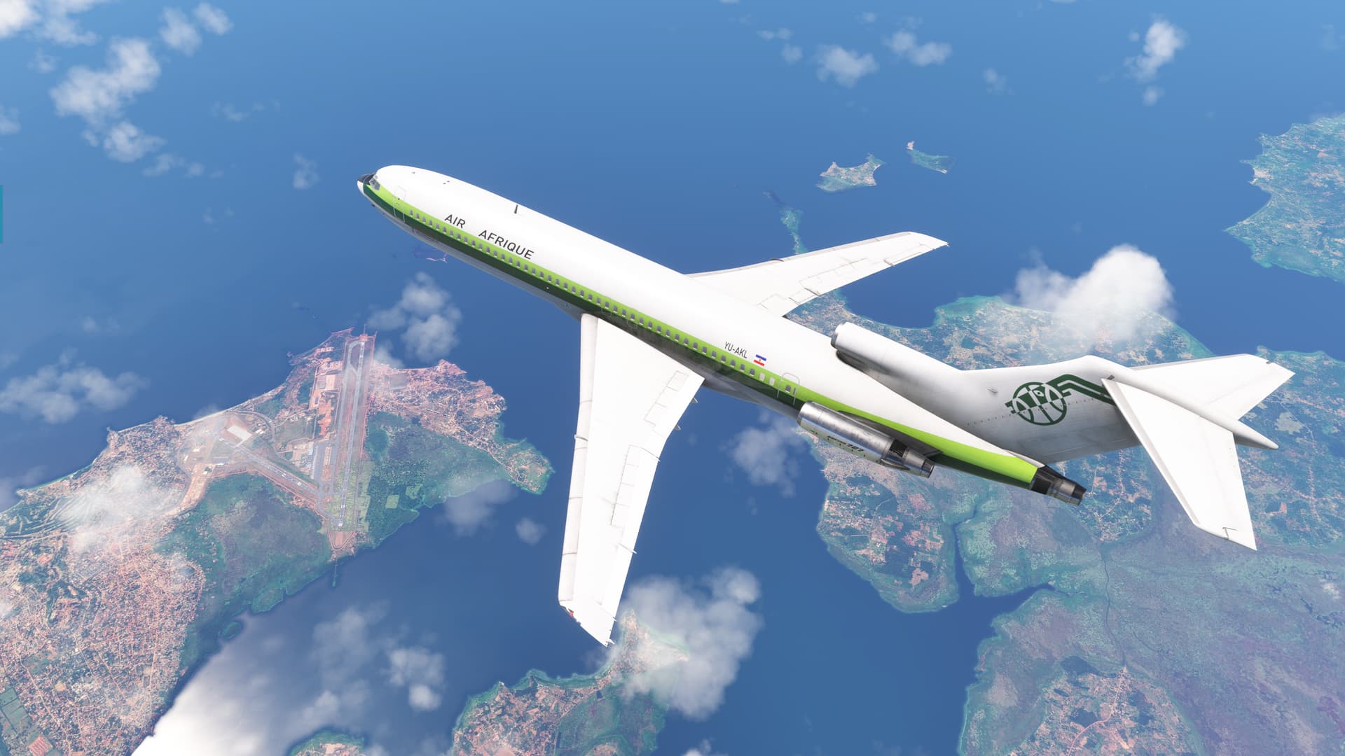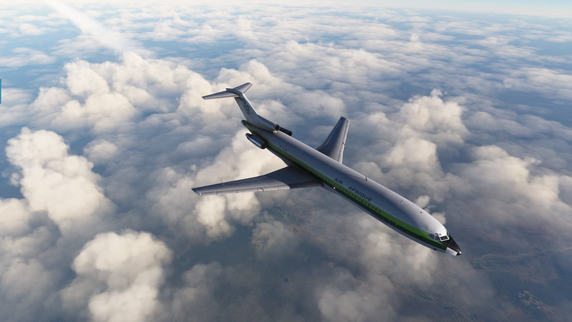 Today, we fly in the livery of Air Afrique, courtesy of oskar4007. I was happy to find a livery that represented the host continent, even though AA was originally partly owned by Air France…